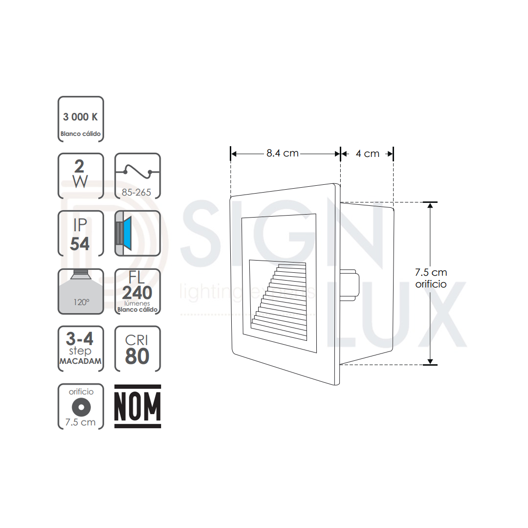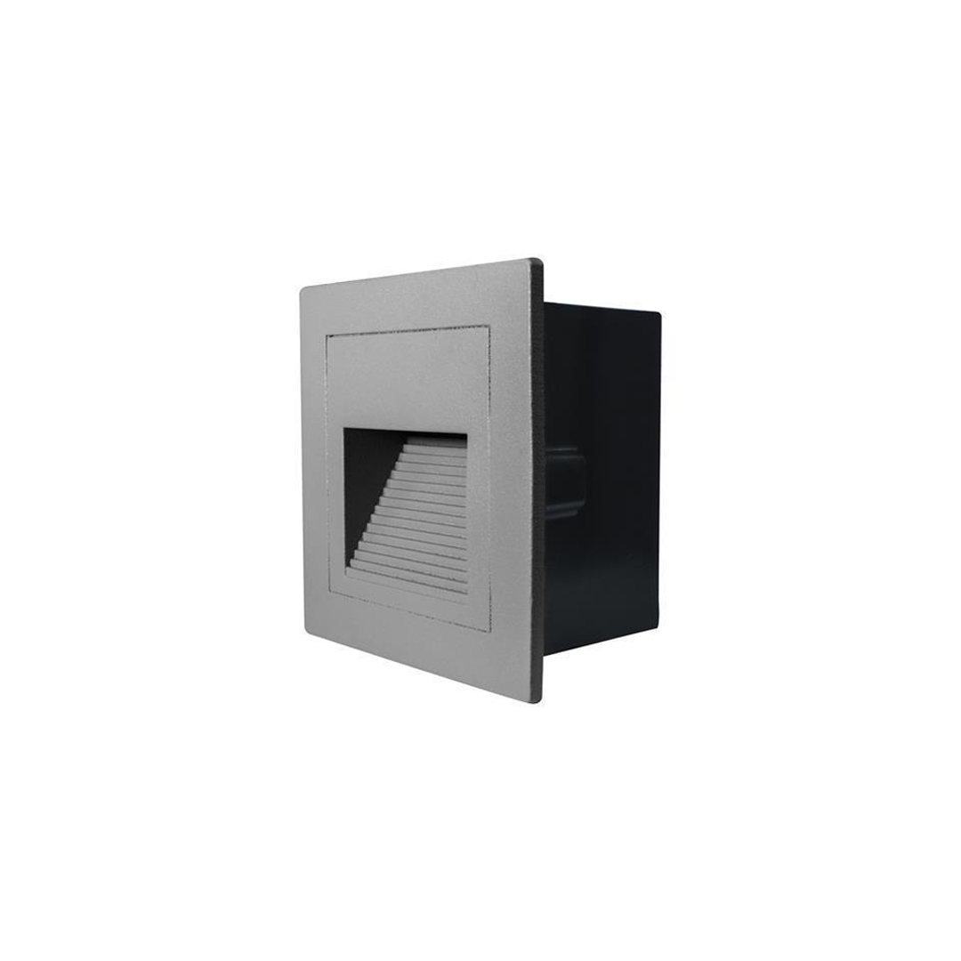 Luminario de pared, con 1 led, blanco cálido, 2 Watts, óptica 120°, cuadrado, de empotrar, tapa de aluminio gris cuerpo aluminio y housing de plástico, 85-265V ca, protección IP54 ILUSP852WWWG – ILUMILEDS