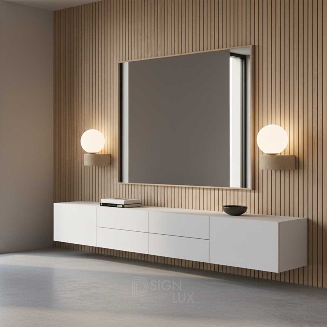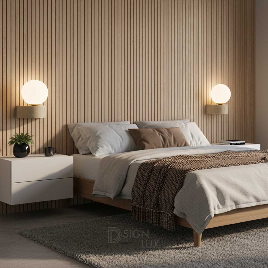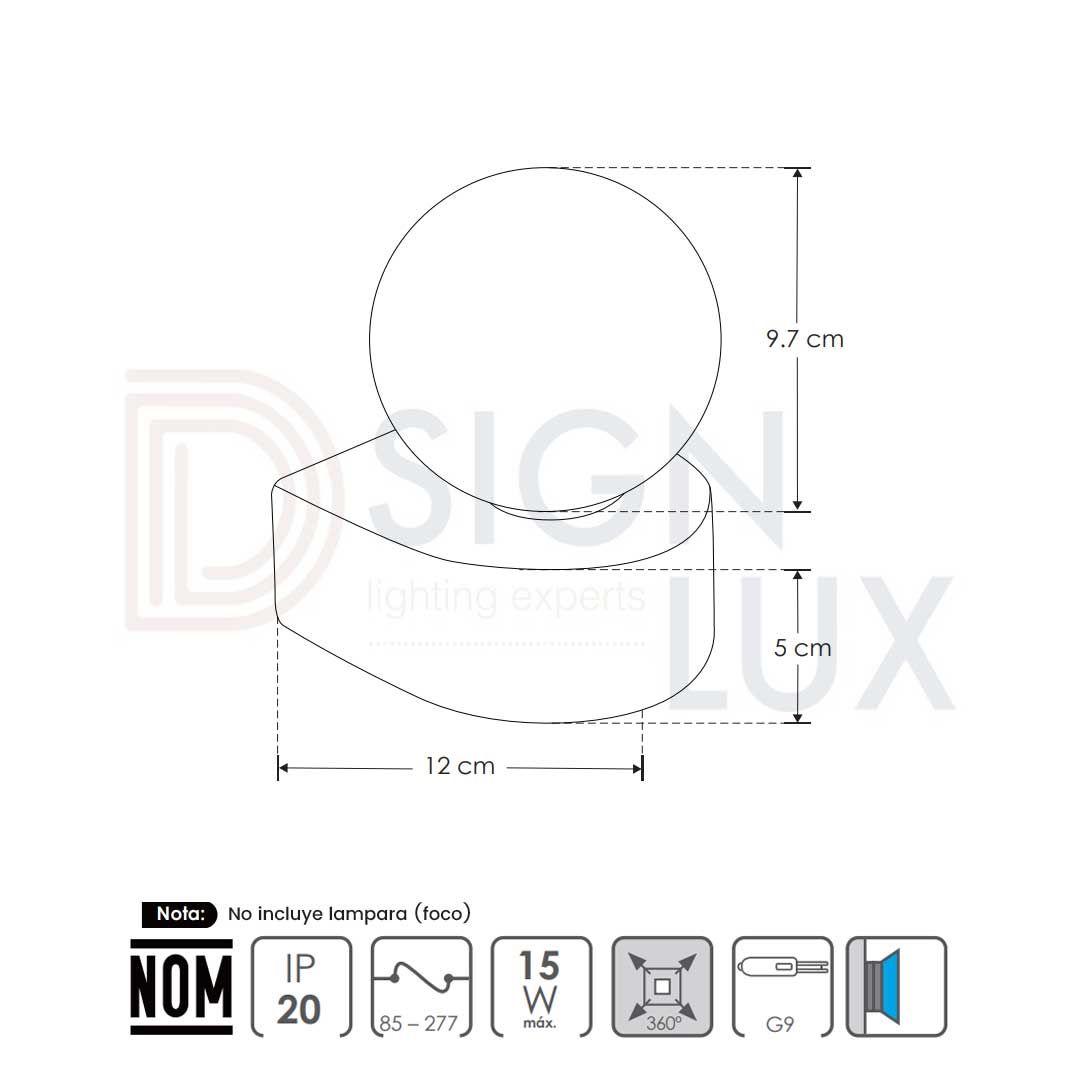 Lámpara de pared con esfera difusa, ideal para hogares, comercios y oficinas.