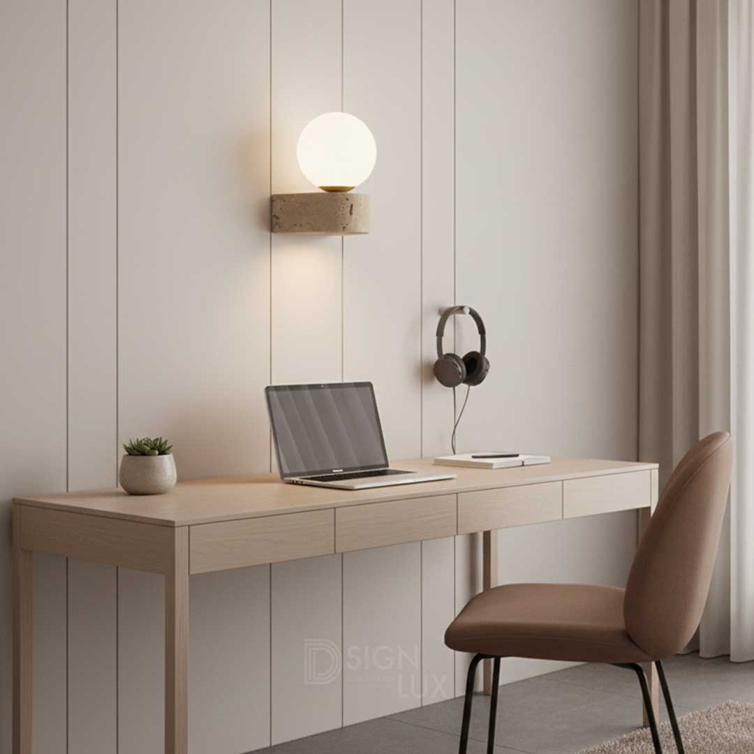 Lámpara de pared para interior, con esfera de cristal difuso, de travertino acabado beige, 15W máx., base G9, IP20 (No incluye foco)