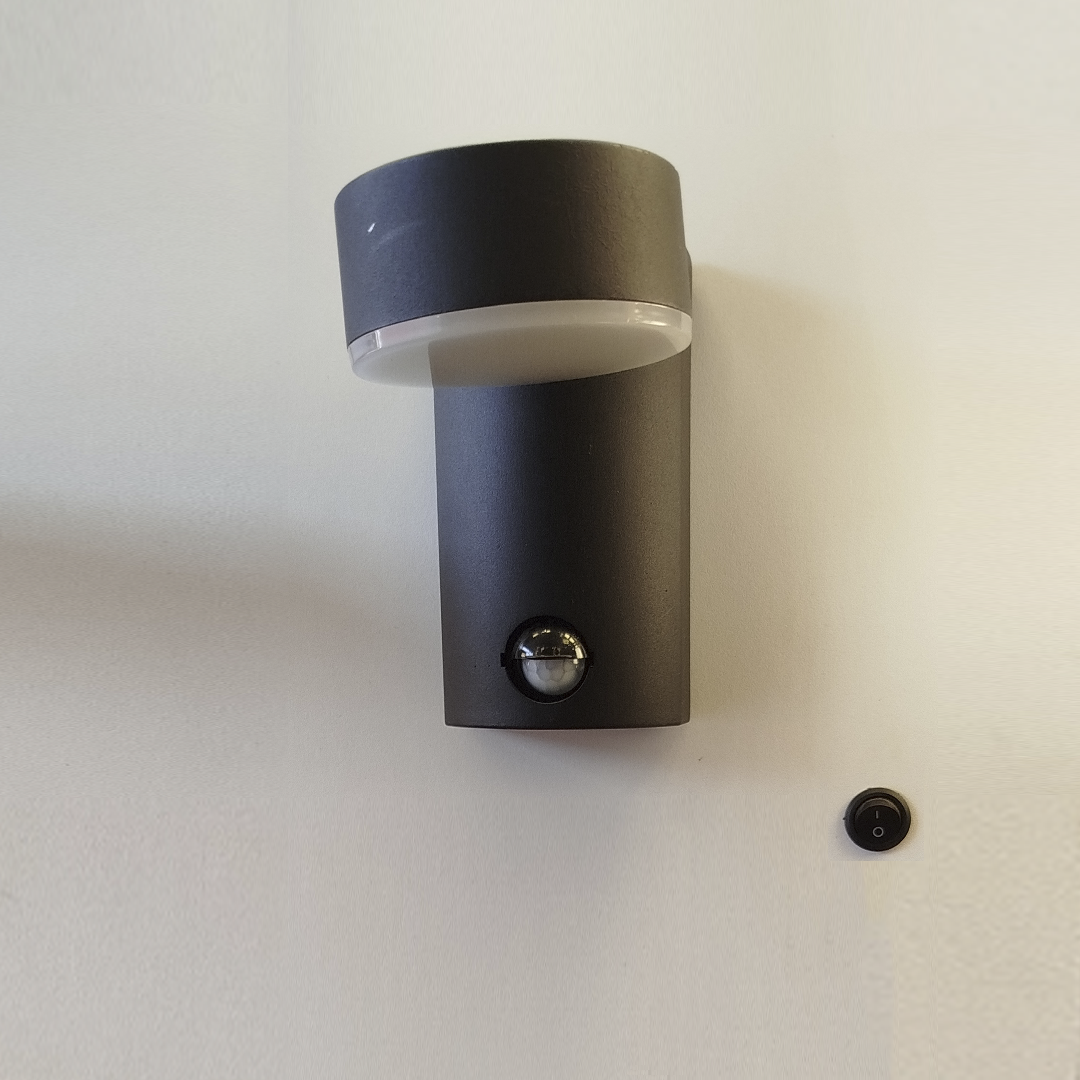 Luminario de pared con sensor de movimiento, de led, blanco cálido, 12 Watts, cilíndro salida de luz indirecta rotativo, de sobreponer dirigible, aluminio acabado negro, 110-130V ca, protección IP54 ILU366130SB – ILUMILEDS