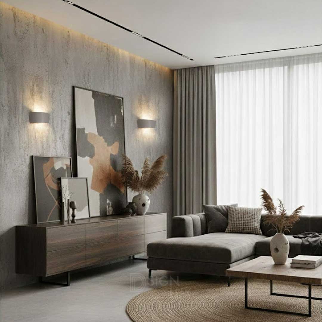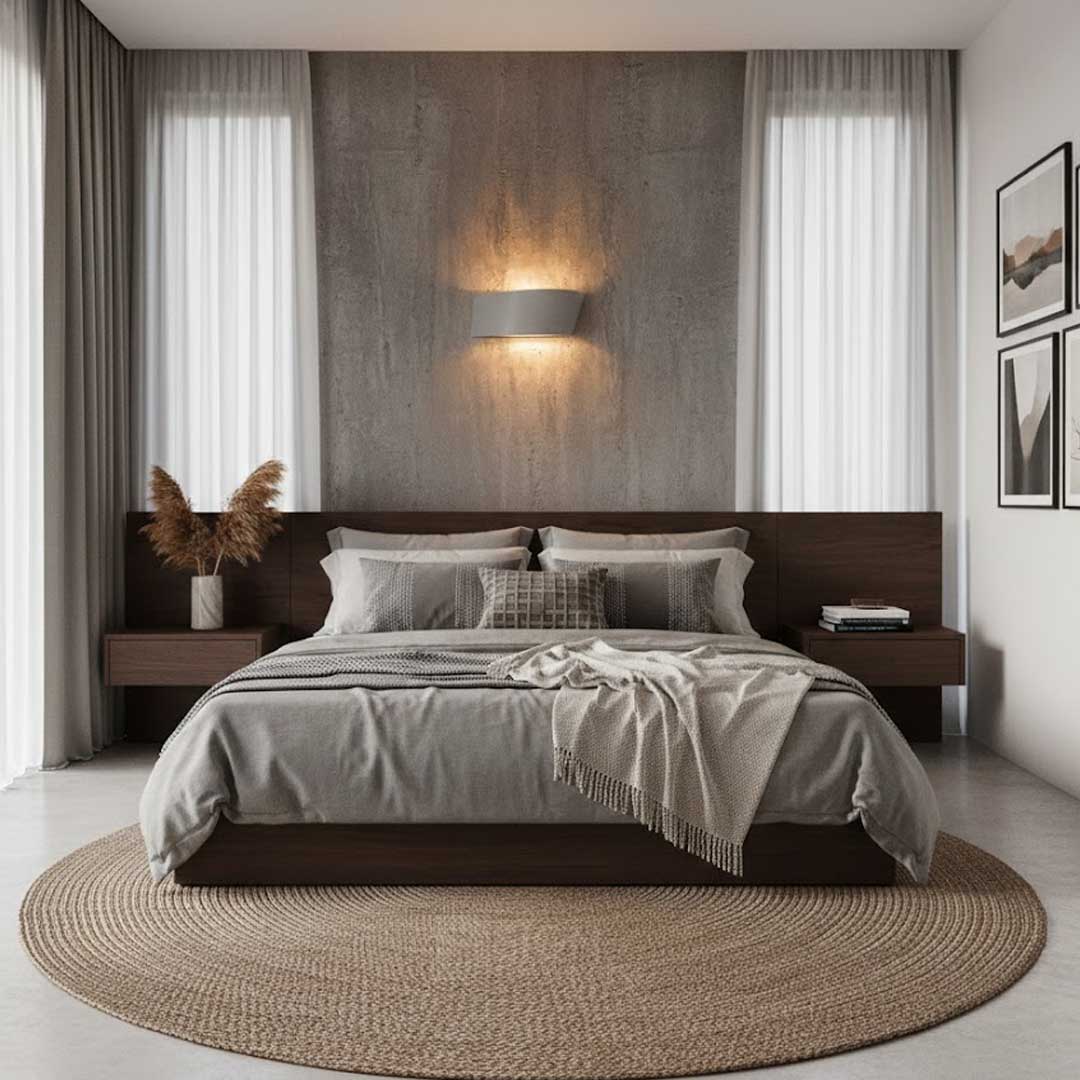 Lámpara de pared de concreto o yeso, ideal para espacios interiores.