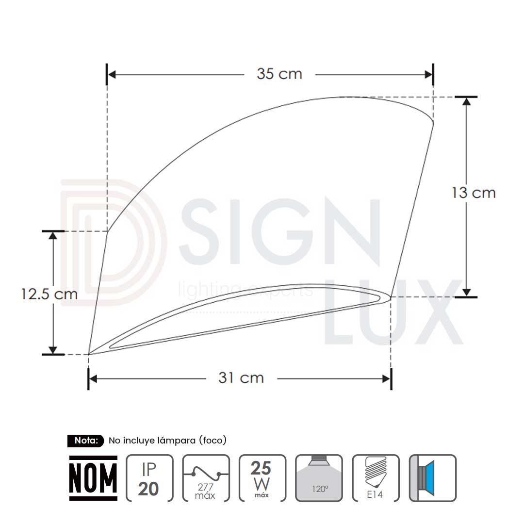 - N° de luces / Base: 1 luz / base E14 (foco no incluido)