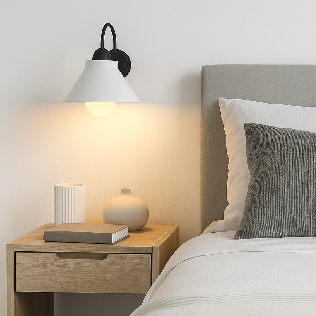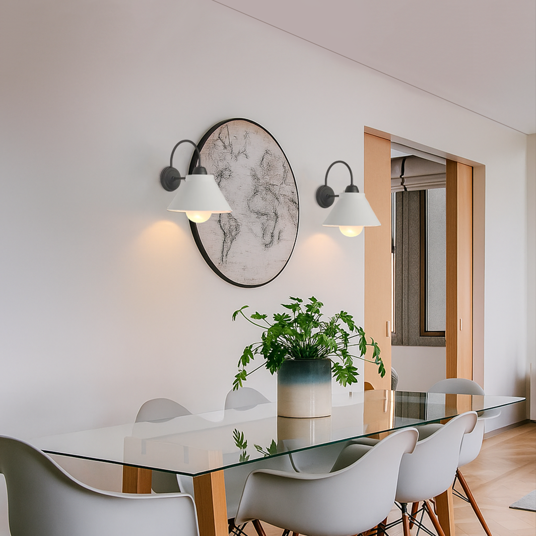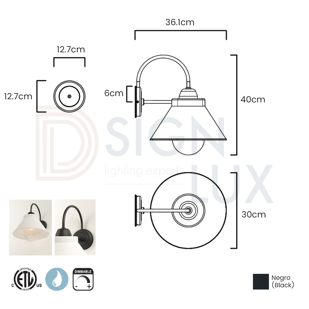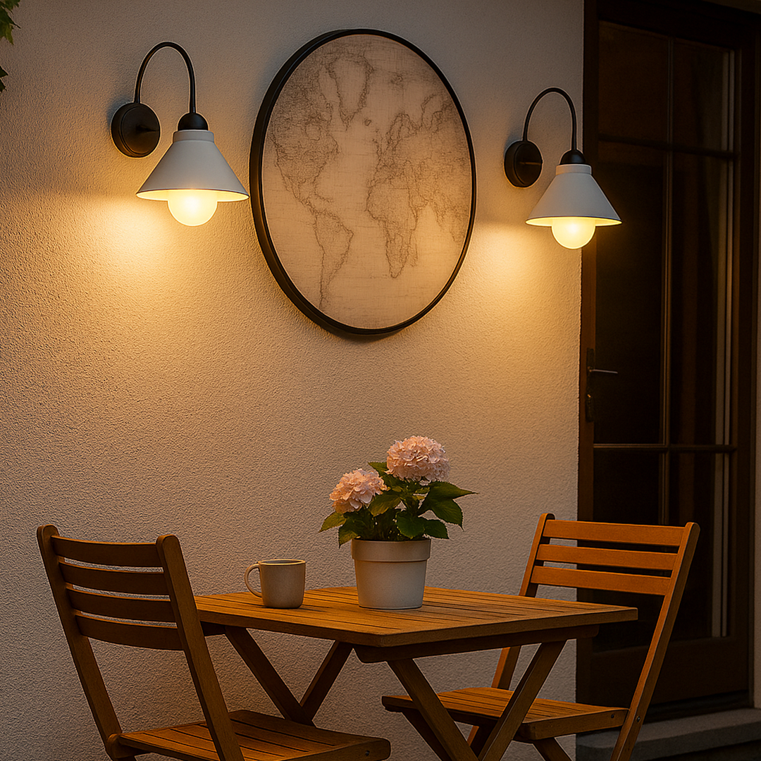 Lámpara de pared exterior LED de estilo industrial, ideal para terrazas, pasillos y entradas.
