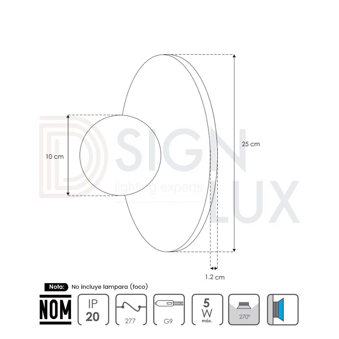 - N° de luces / Base: 1 luz base G9 (No incluye foco)