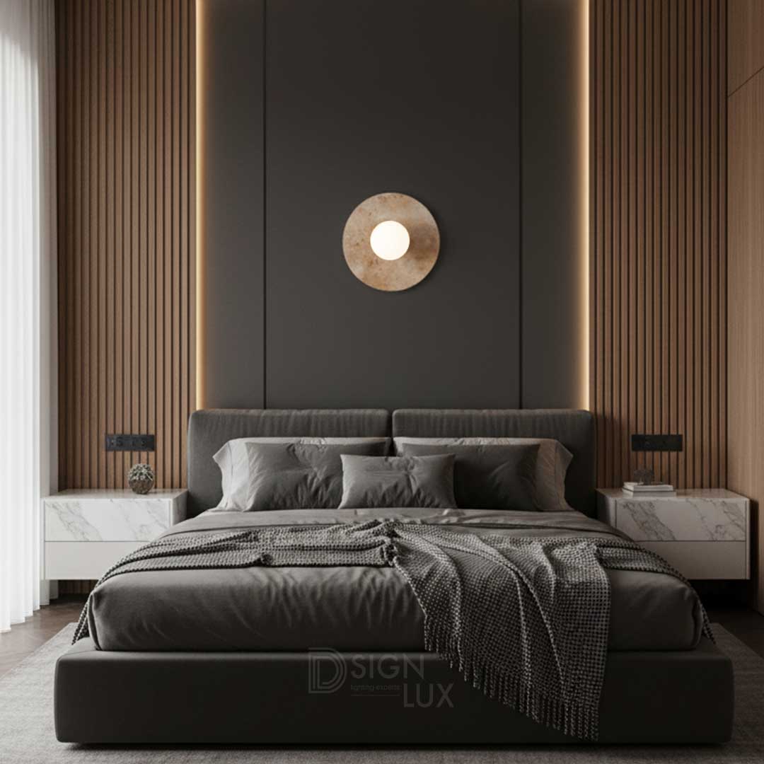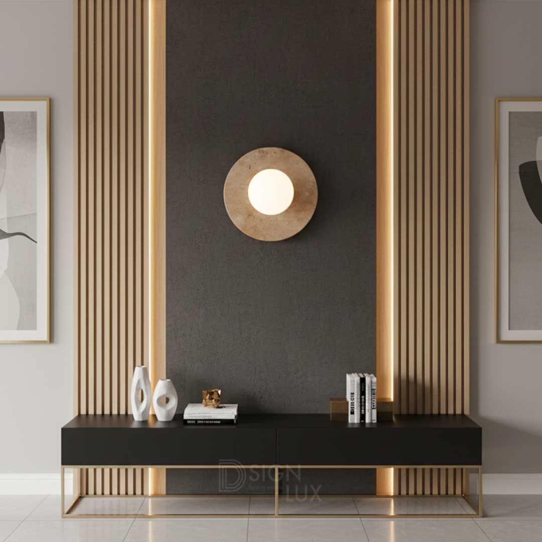 Lámpara de pared, para interior, de travertino acabado beige y mármol acabado blanco, base G9 (No incluye foco), 5W máx., 100-265 V ca, óptica 270°, protección IP20. AngeLico Travertino – ILUEUR039G9MCMR / ILUEUR039G9MBCR – Ilumileds