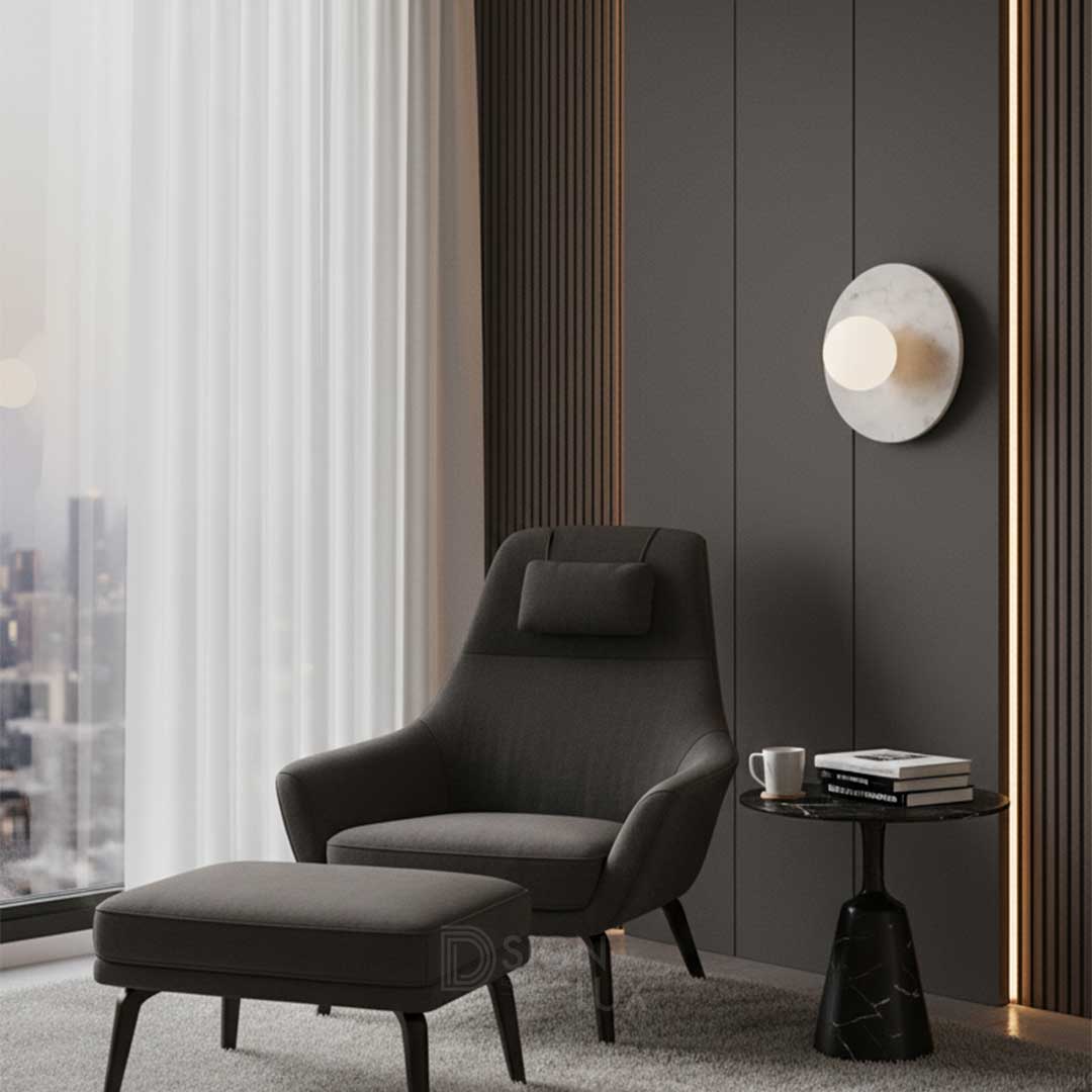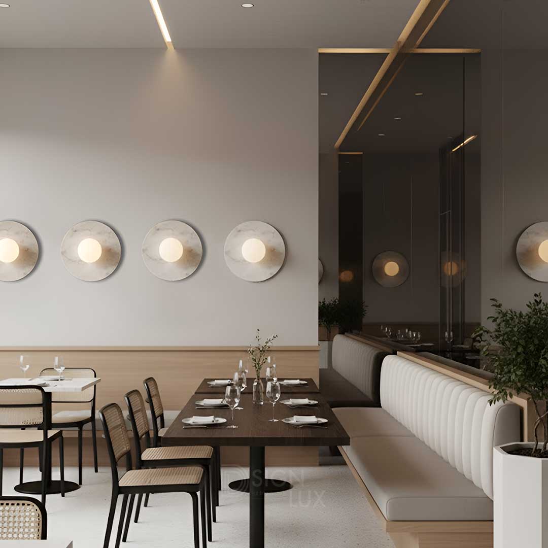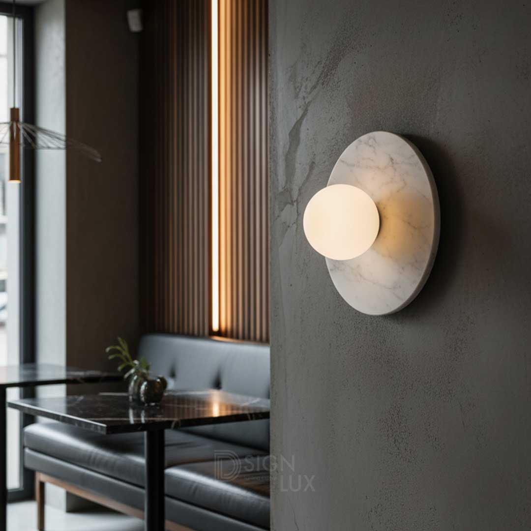 Lámpara de pared con esfera difusa, ideal para hogares, comercios y oficinas.