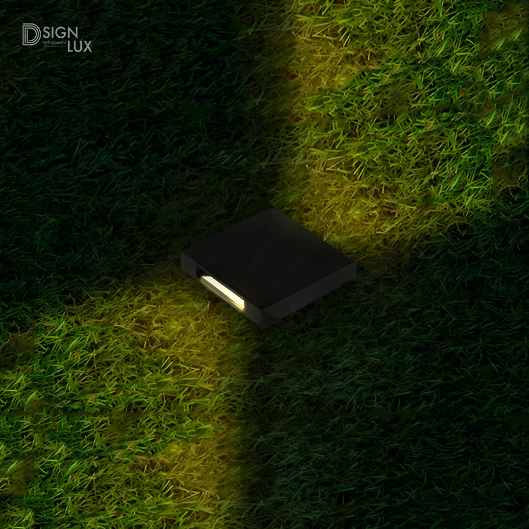 Luminario de piso LED de exterior 1W para empotrar cuadrado 5.5cm con dos salidas de luz incluye housing.