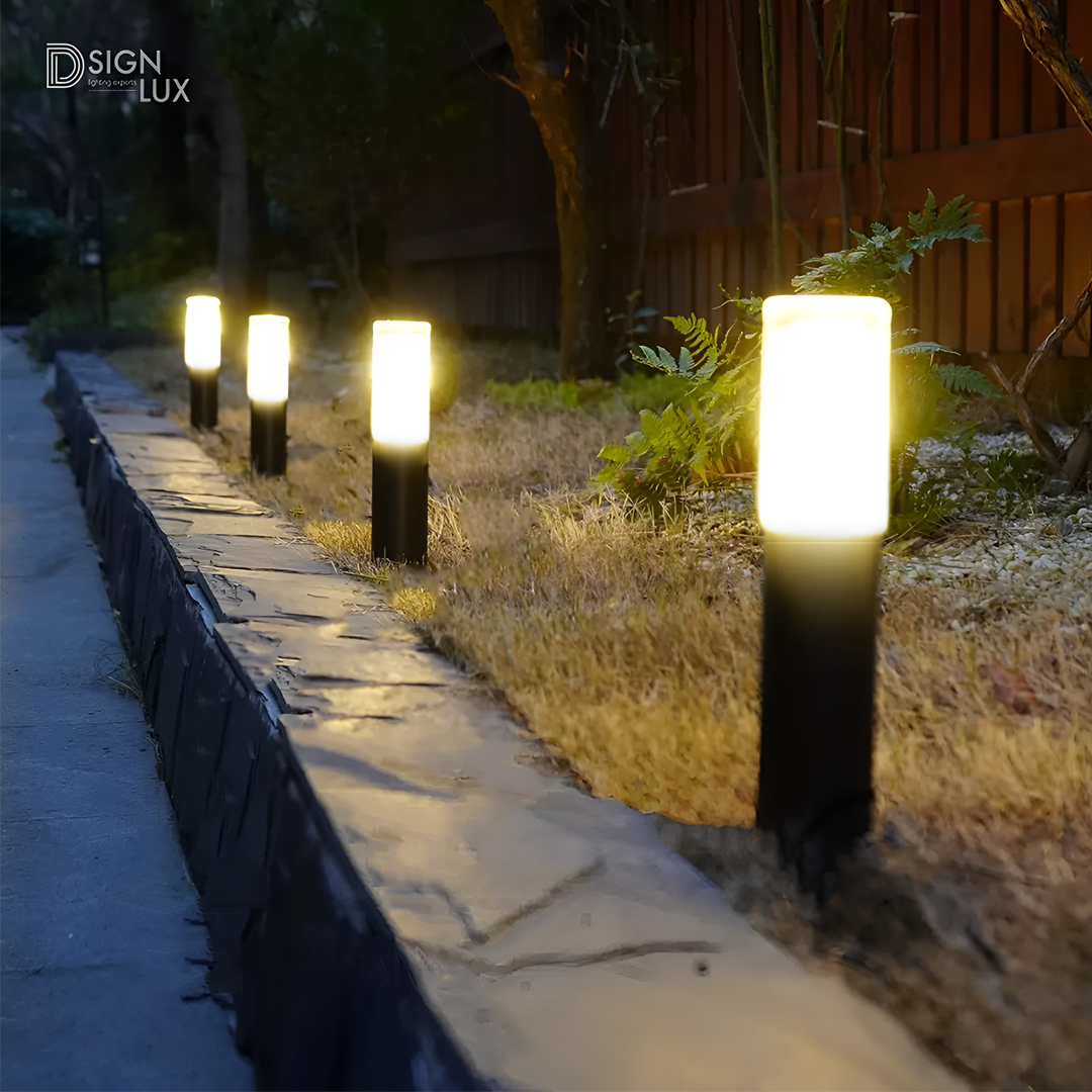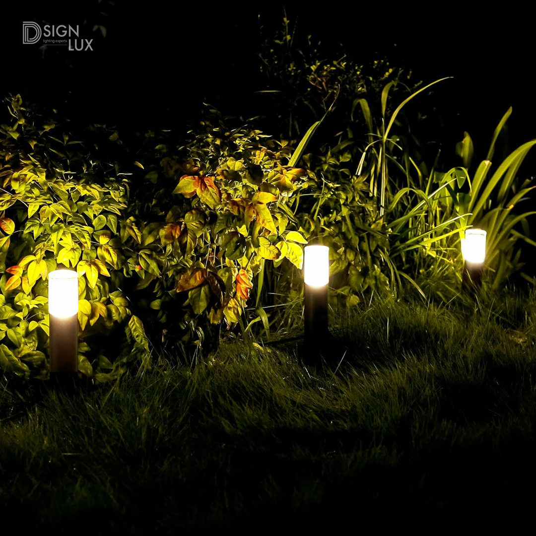 Luminario de piso LED para exterior tipo cilindro con estaca de sobreponer de 50cm en luz blanco calido, 3W