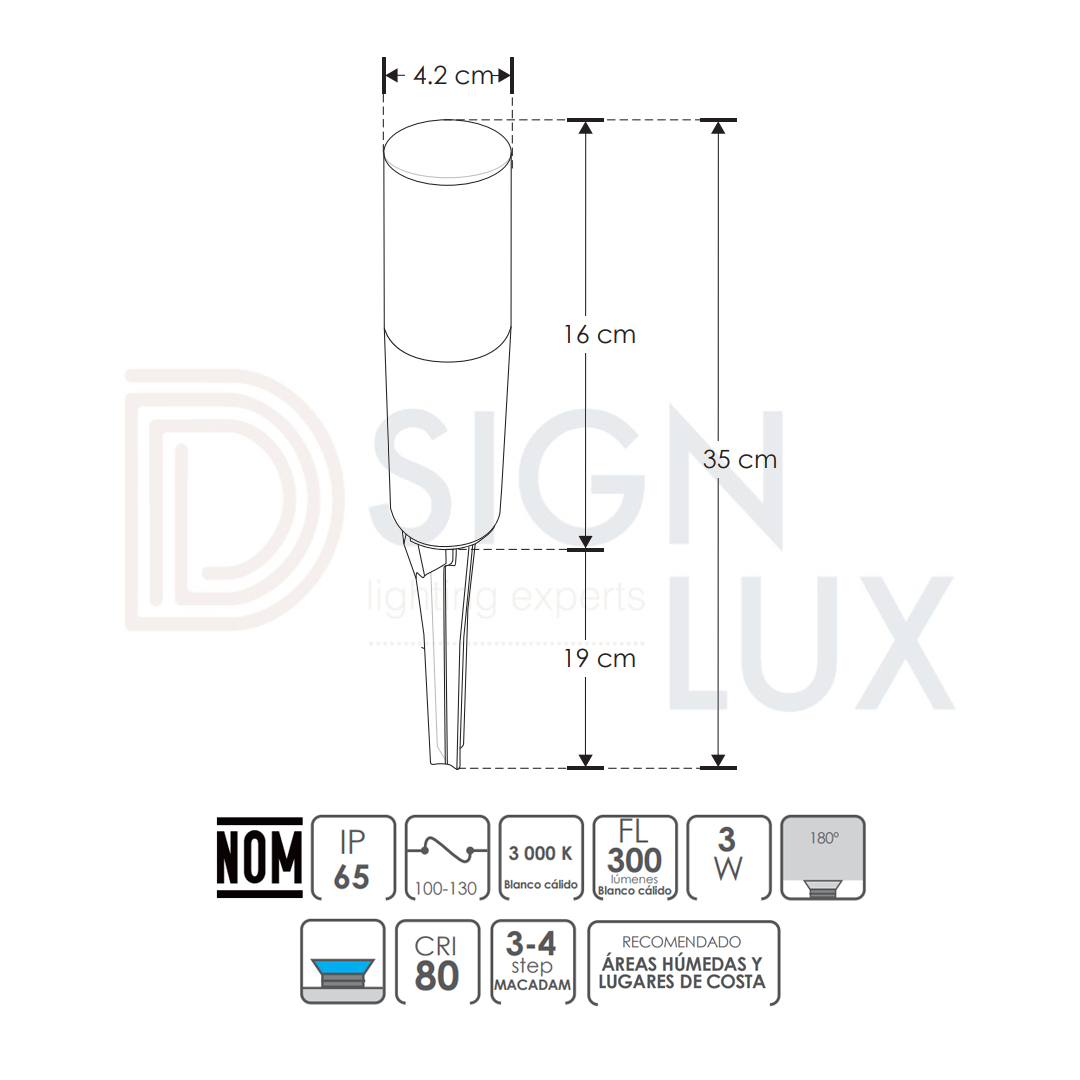 Lampara de piso para exterior como jardines y caminos, con luz lateral o concéntrica 3.5W
