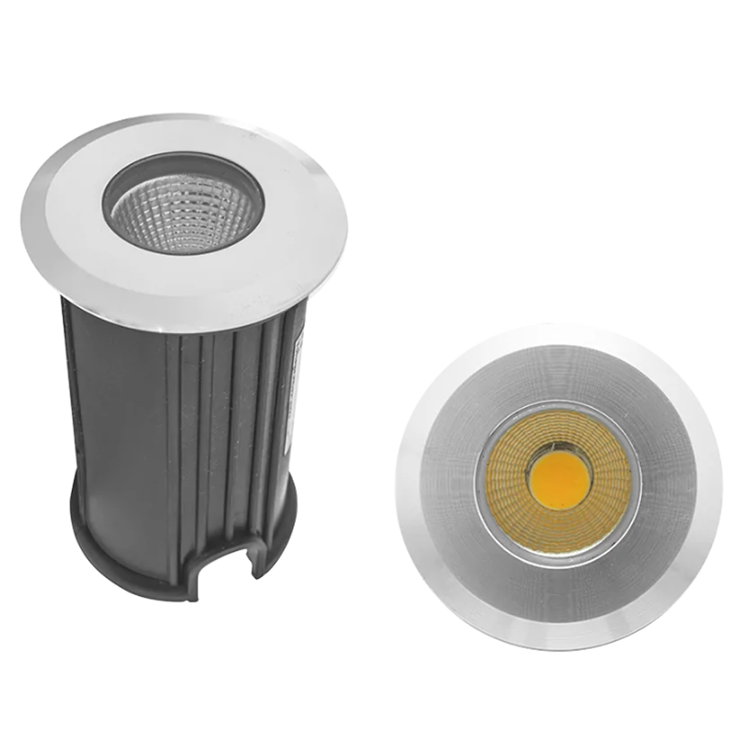 Luminario de piso LED de exterior 5W para empotrar redondo 10cm, incluye housing.