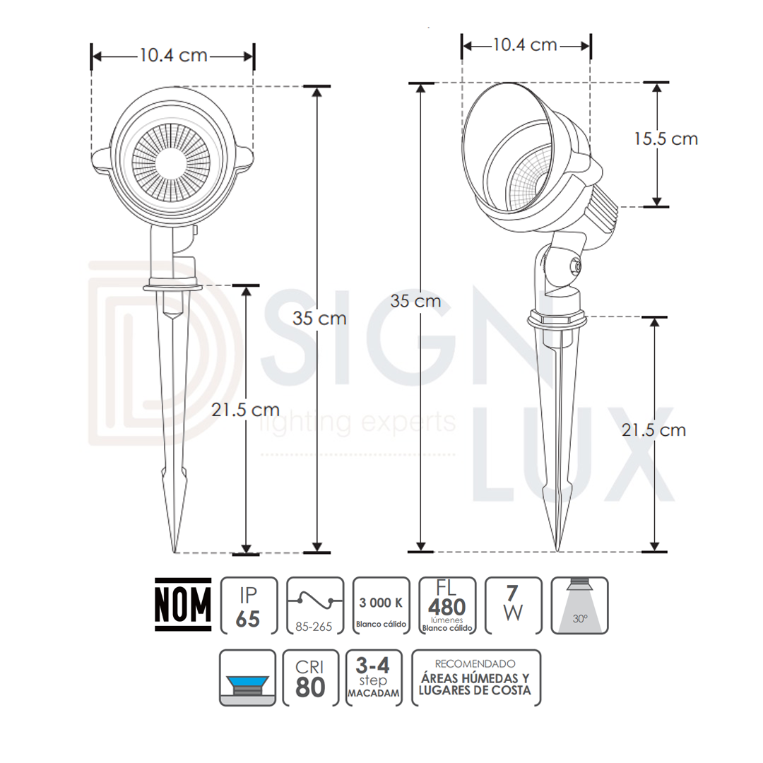 Luminario de piso, led, para exterior, blanco cálido, 7 Watts, óptica 30°, de sobreponer, aluminio acabado negro incluye estaca, 85-265V ca, protección IP65. ILUEST7WWW – ILUMILEDS