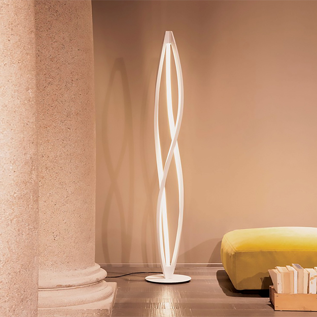Lampara de piso, LED integrado, decorativa, de metal y acrílico, en acabado negro / blanco, ø280*H1830mm, 6080lm, 90-130V, 76W, 3000K. AKI Q98253-BK / Q98253-WH – QUOR