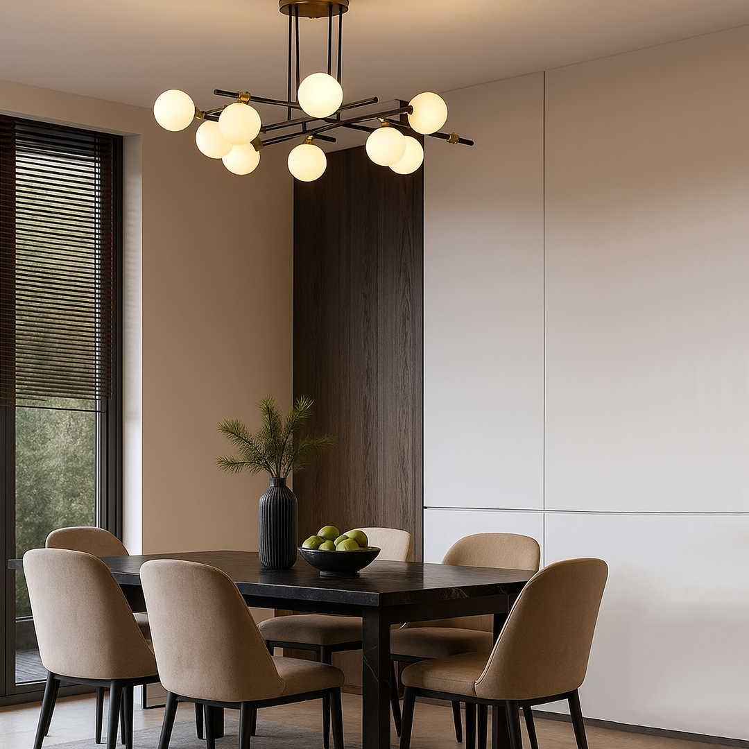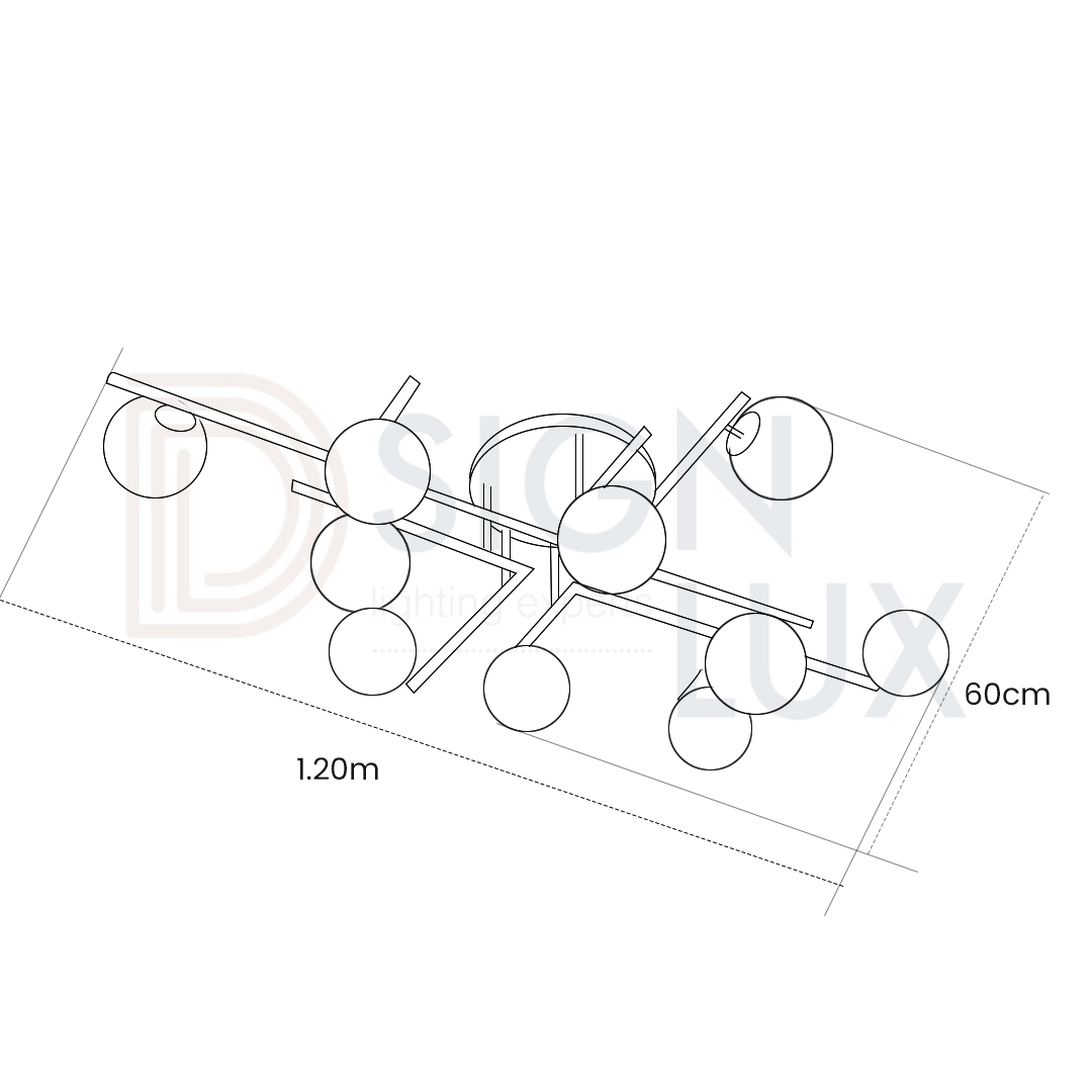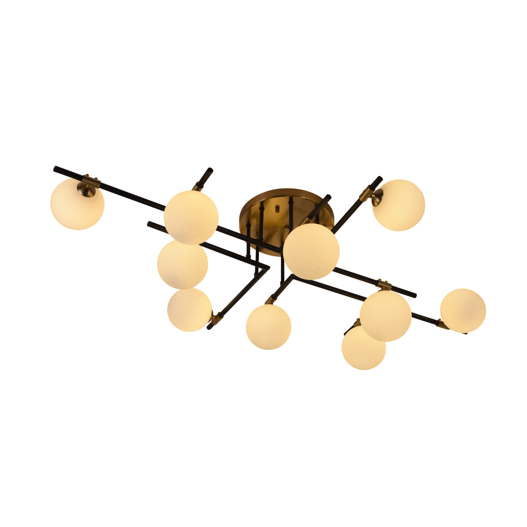 Lámpara de techo plafón de aluminio y esferas de cristal opalino 10 luces