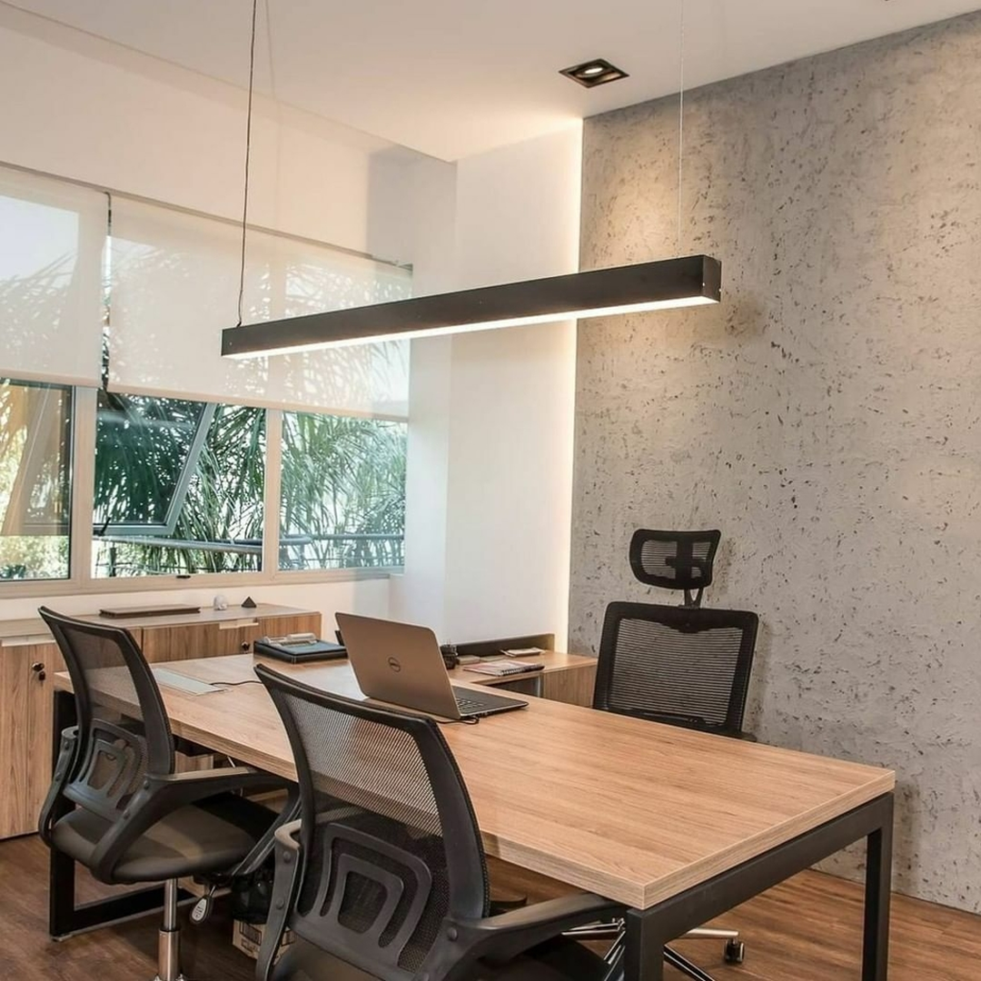 Luminario led para suspender rectangular de bajo índice de deslumbramiento (UGR) con tarjeta PCB. No requiere driver externo Incluye soportes, cable de acero y cable de alimentación de 2 m de largo
