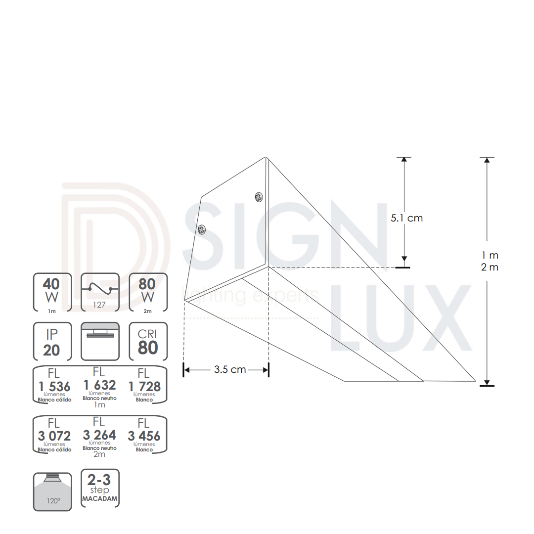 Luminario, de led, rectangular blanco cálido, 40 Watts, óptica 120°, suspendido, aluminio y policarbonato acabado negro incluye soportes de fijación, 127V ca, protección IP20, PA3551NUGR1MWWAC – PA3551NUGR1MWNAC – PA3551NUGR1MWAC – PA3551NUGR2MWWAC – PA3551NUGR2MWNAC – PA3551NUGR2MWAC – ILUMILEDS