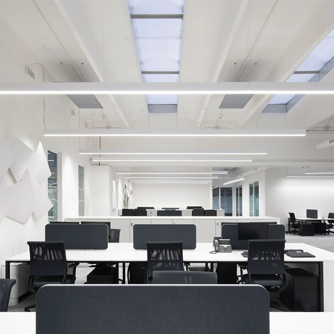 Luminario led para suspender rectangular de bajo índice de deslumbramiento (UGR) con tarjeta PCB. No requiere driver externo Incluye soportes, cable de acero y cable de alimentación de 2 m de largo