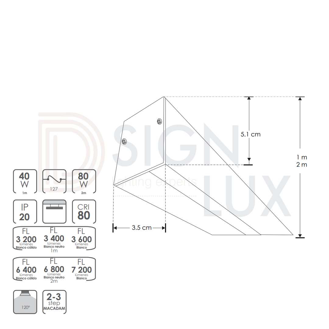 Luminario, de led, blanco cálido, 40 Watts, óptica 120°, suspendido, aluminio y policarbonato incluye soportes de fijación, 127V ca, protección IP20 PA3551UGR1MWWAC – PA3551UGR1MWNAC – PA3551UGR1MWAC – PA3551UGR2MWWAC – PA3551UGR2MWNAC – PA3551UGR2MWAC – ILUMILEDS