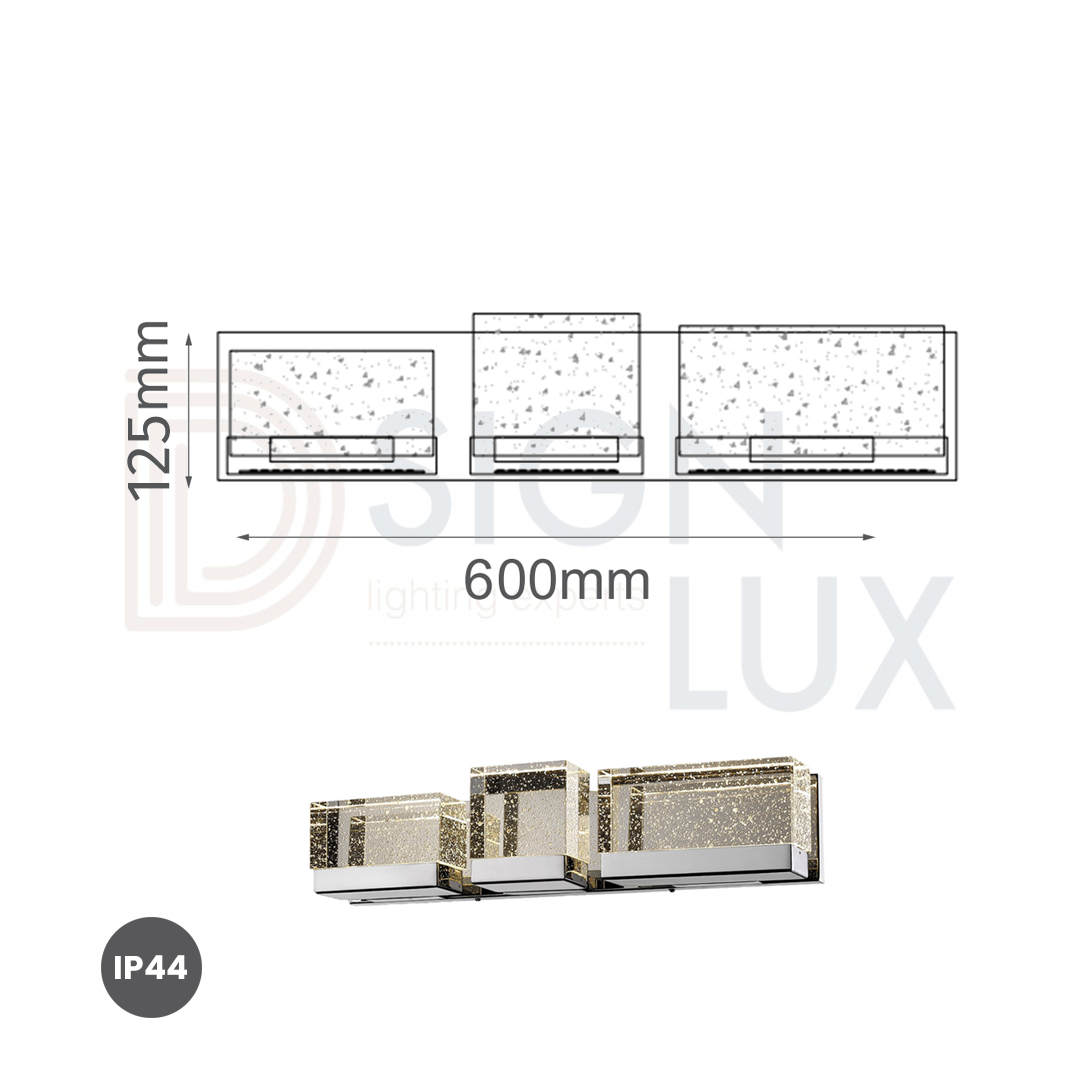 Lámpara para baño, LED, transparente, de metal y cristal, acabado cromo, 21W, 1680lm, 90-130V, 3000K, LUNA – Q30023-CH – QUOR