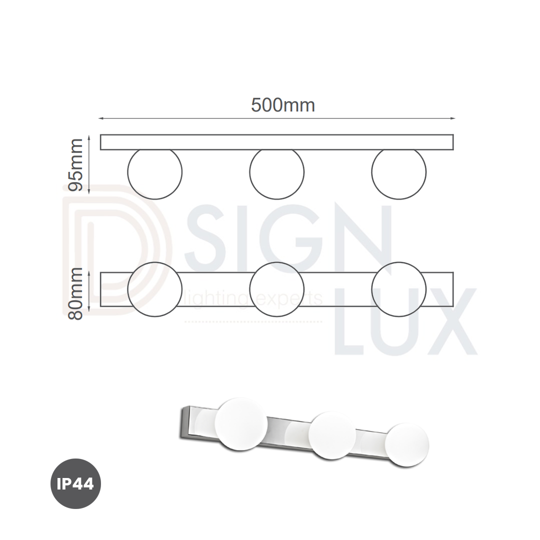 Lampara led para baño de 3 esferas linea vanity, ideal para baño.