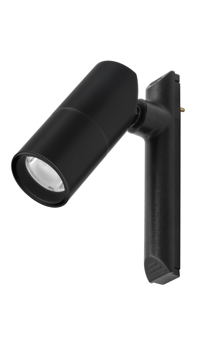 Luminario para micro track magnético tipo spot dirigible de LED blanco cálido 1 Watt óptica 24° aluminio acabado negro 24 V cc protección IP20 ILUMILEDS