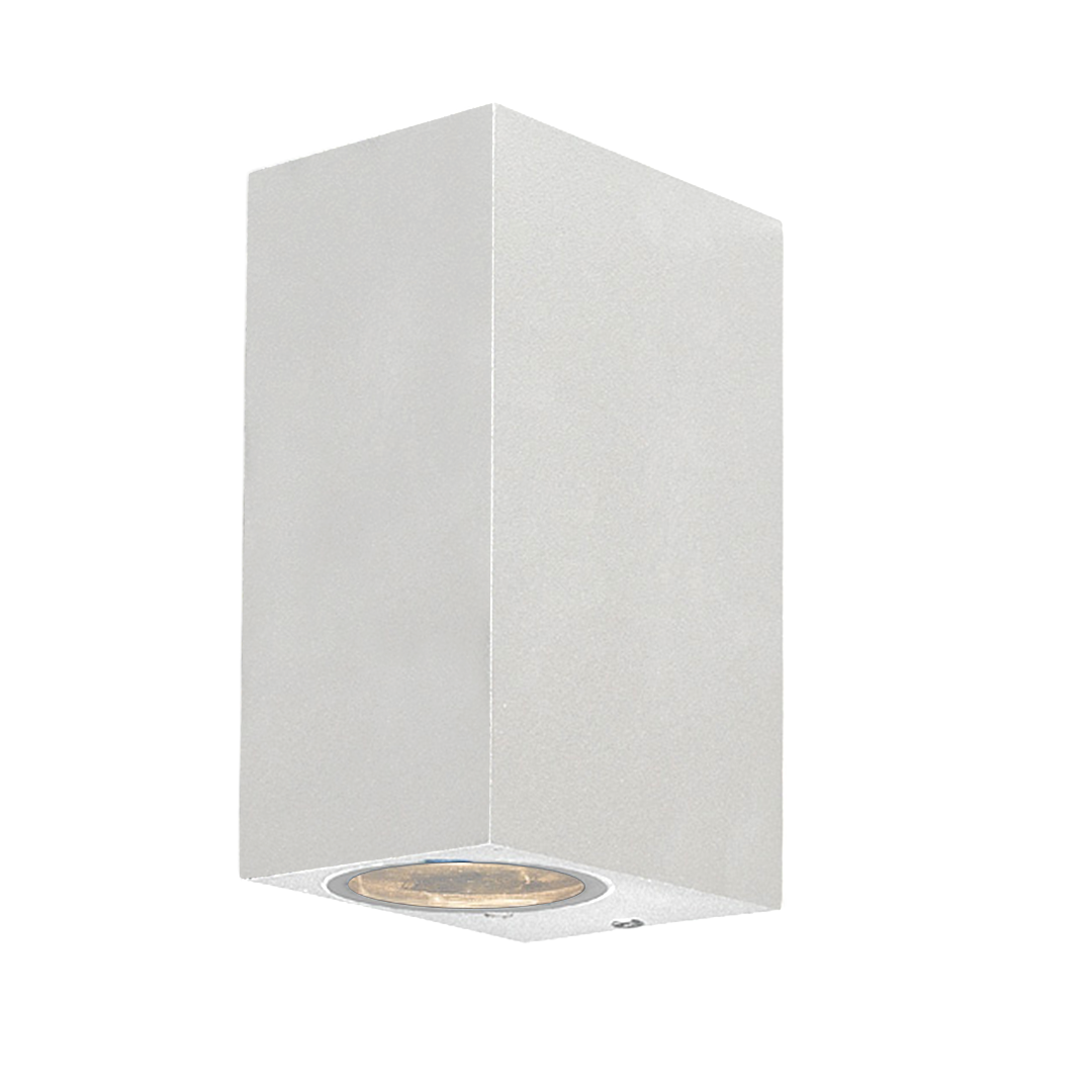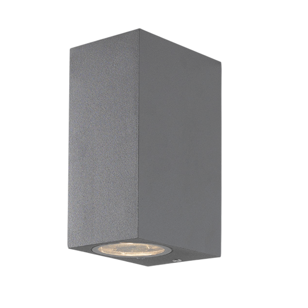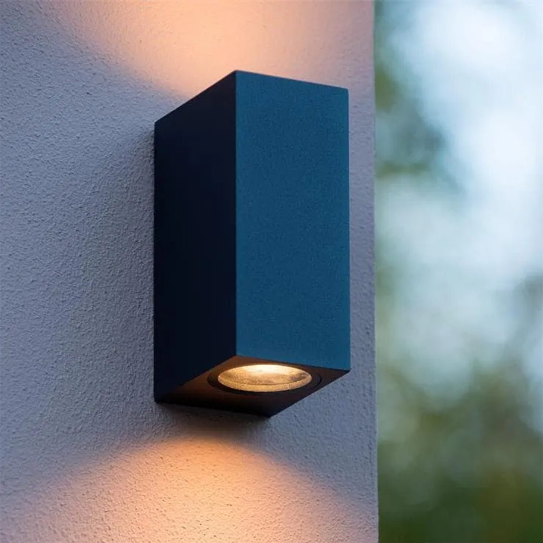 Lámpara para sobreponer en pared rectangular,de aluminio, base GU10, para espacios exteriores IP44.