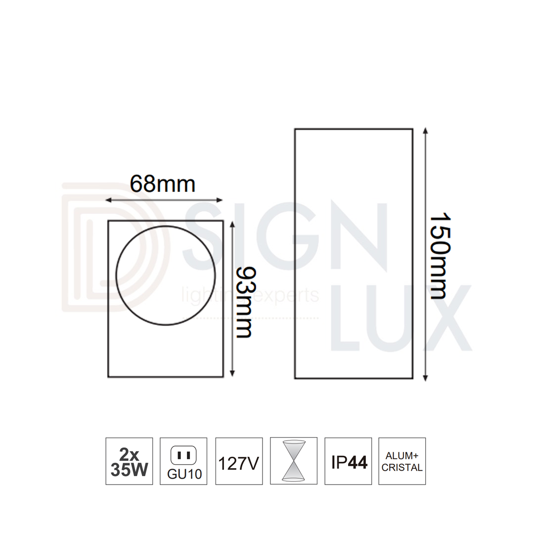Lámpara para sobreponer en pared, de aluminio y cristal templado, base GU10 (foco no incluido), 127V, 70W, IP44, Serie ARIES – 05-7494-01 / 05-7494-03 / 05-7494-04 – ASTRO LED