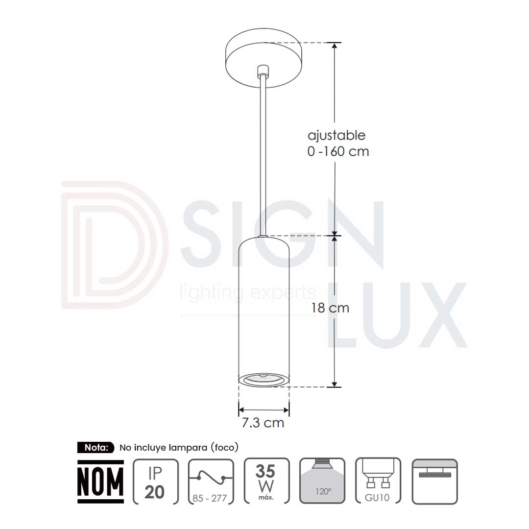 • N° de luces / Base: 1 luz / base GU10 (foco no incluido)