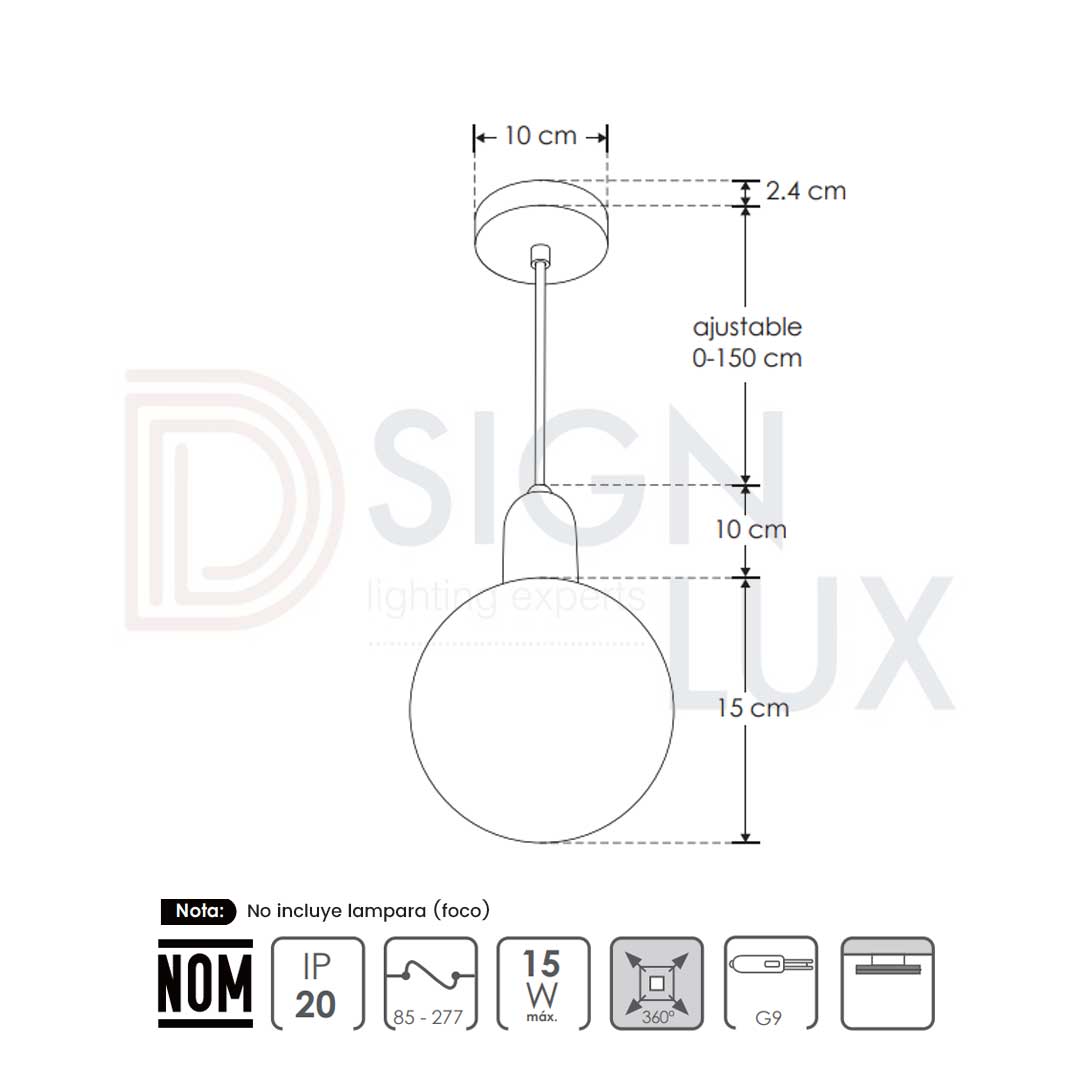 • N° de luces / Base: 1 luz G9 (No incluye foco)