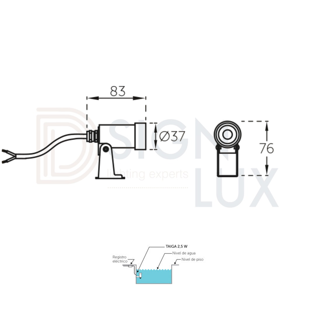 Luminario Subacuática 2.5W para sobreponer o empotrar en piscinas o jardínes IP68.