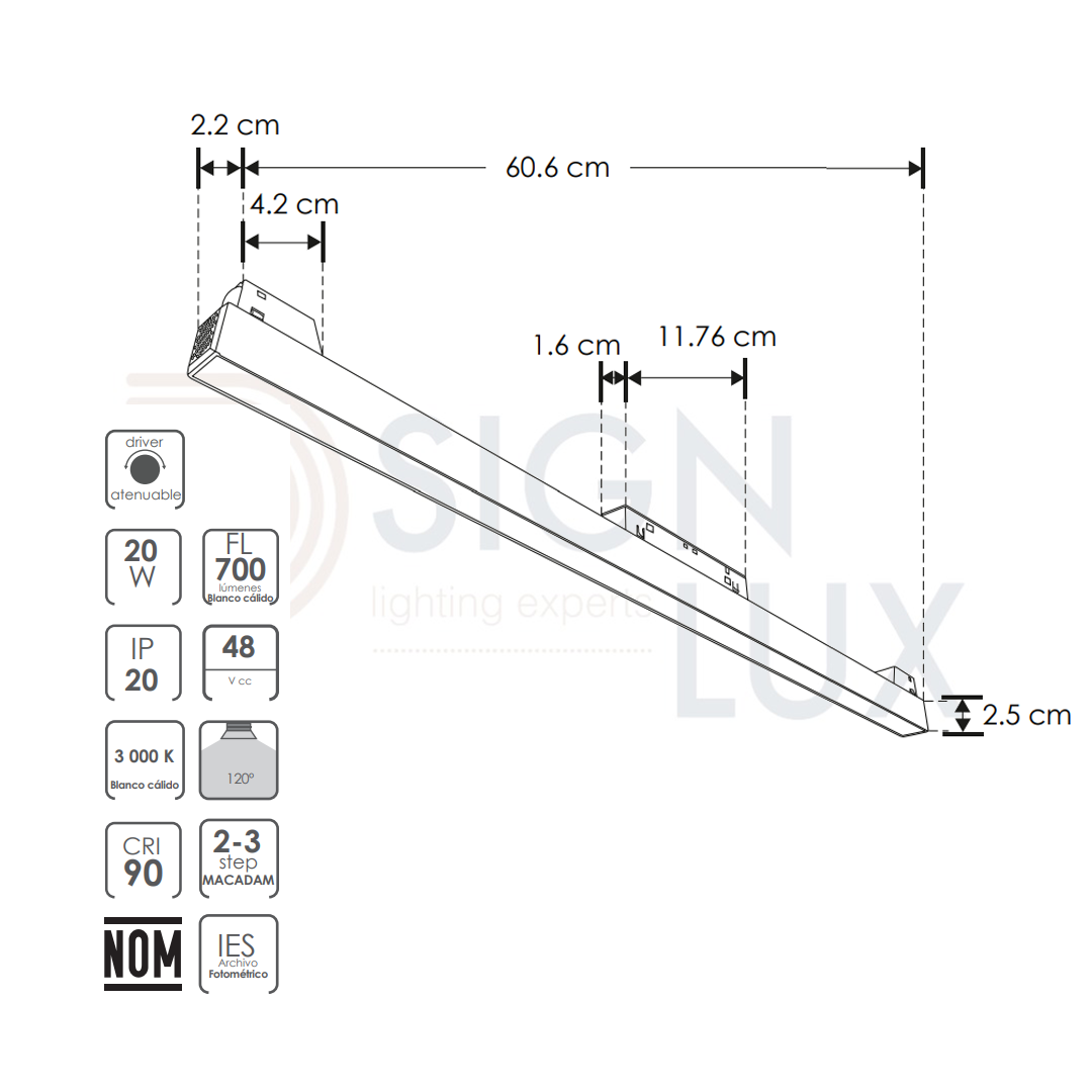 Luminario para riel magnético tipo flood, de led, blanco cálido, 20 Watts,óptica 120°, aluminio acabado negro, 48V cc, protección IP20, ILUWWMAG20W – ILUMILEDS