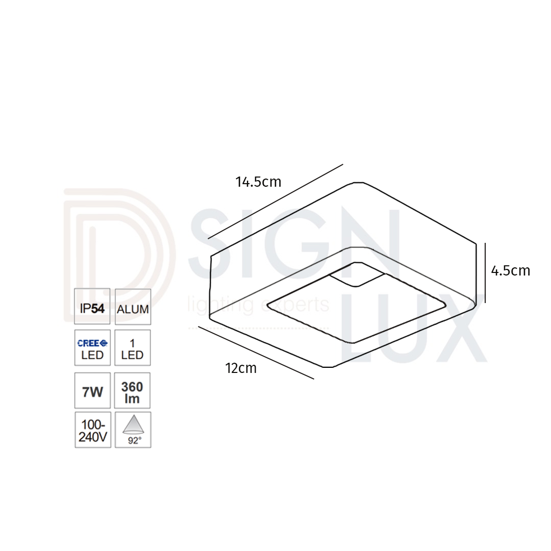 Lampara de pared led, rectangular, de Aluminio, Acabado blanco y grafito, Lúmenes 360lm, 5W, Voltaje de Operación 100-240V, Temperatura de Color, Blanco Cálido 3000K, protección IP54. SERIE ORION – 05-2701-01 / 05-2701-04 – ASTRO LED