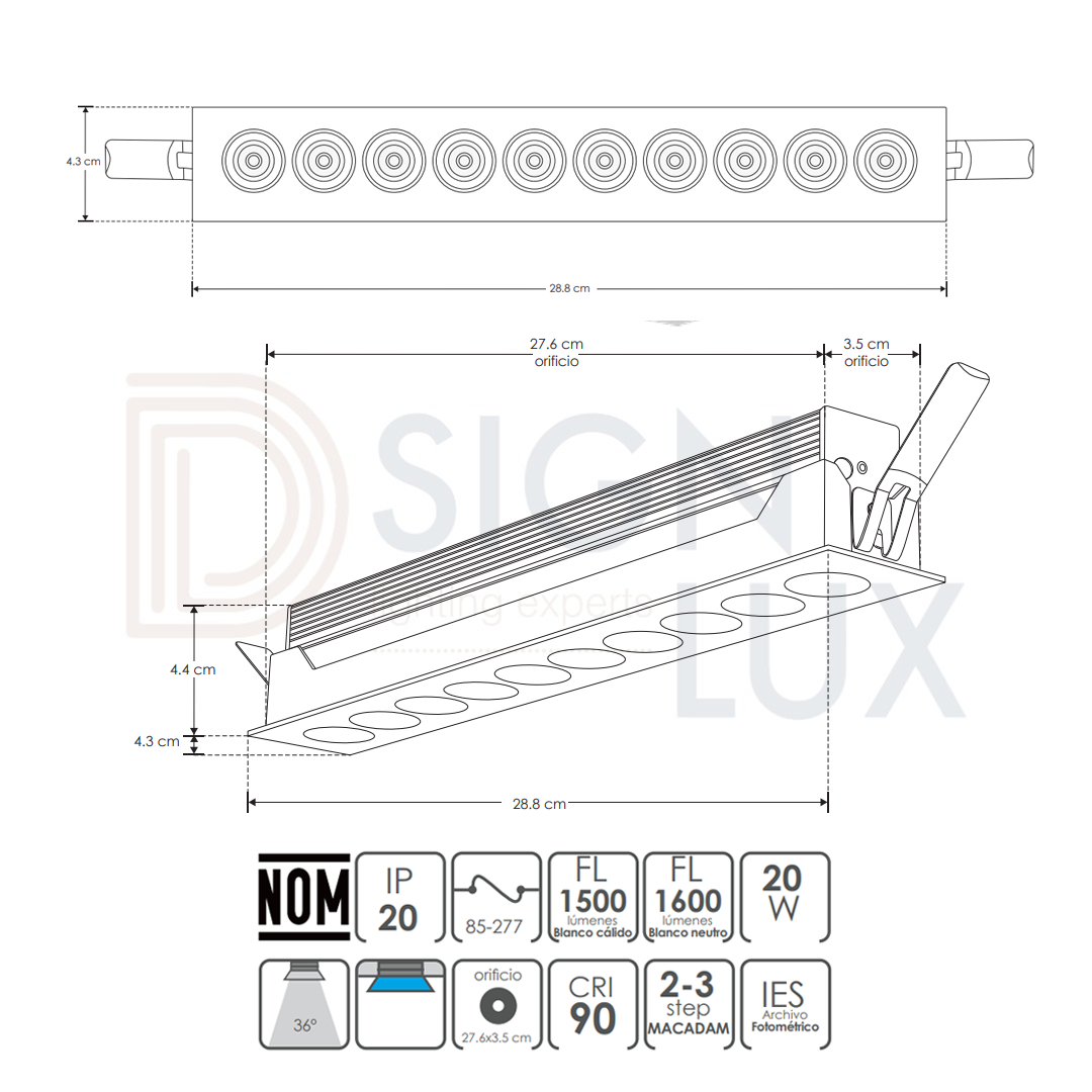 - NOTA: Esta luminaria puede ser atenuable utilizando el driver modelo DD204060020W (se vende por separado)