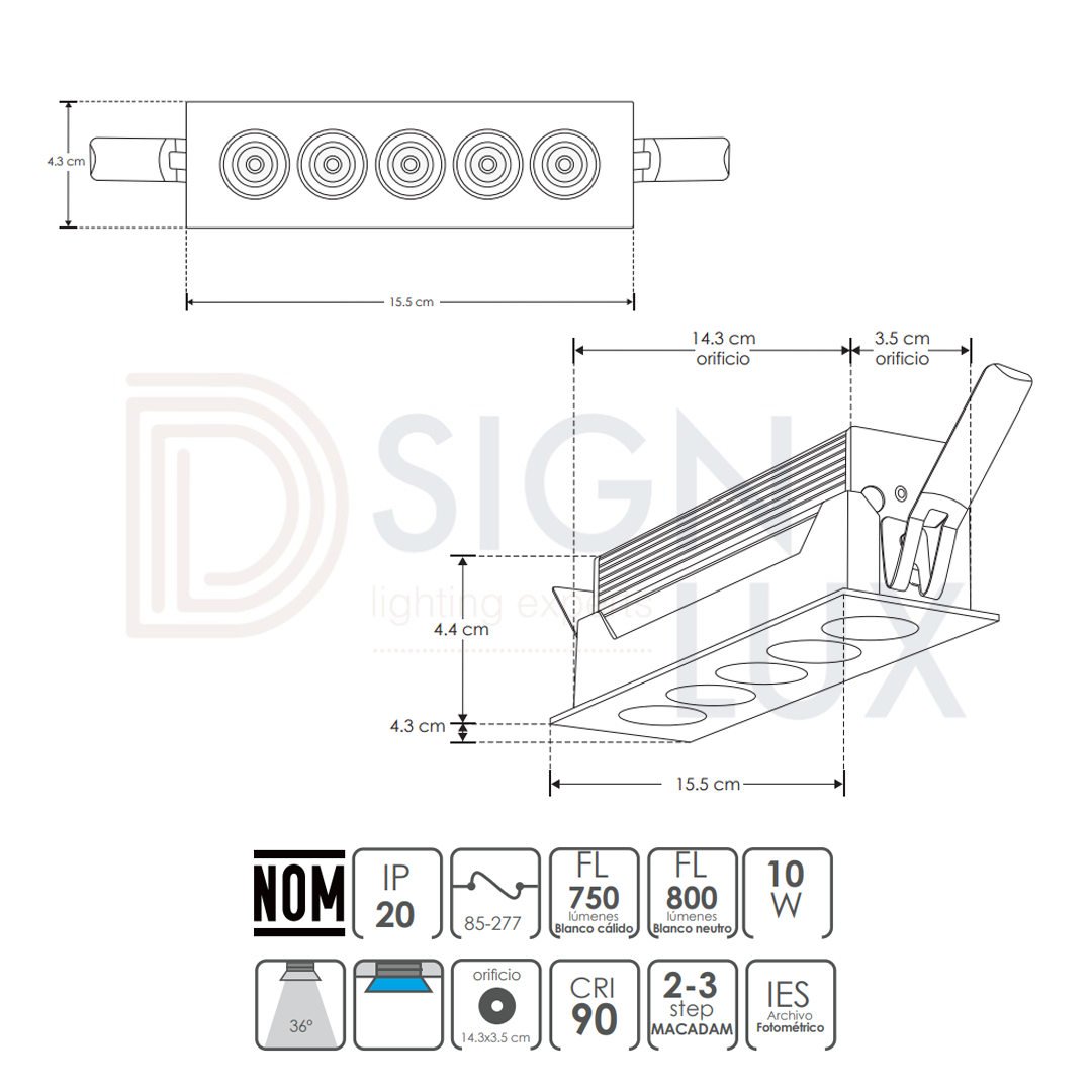 - NOTA: Esta luminaria puede ser atenuable utilizando el driver modelo DD92660015W (se vende por separado)