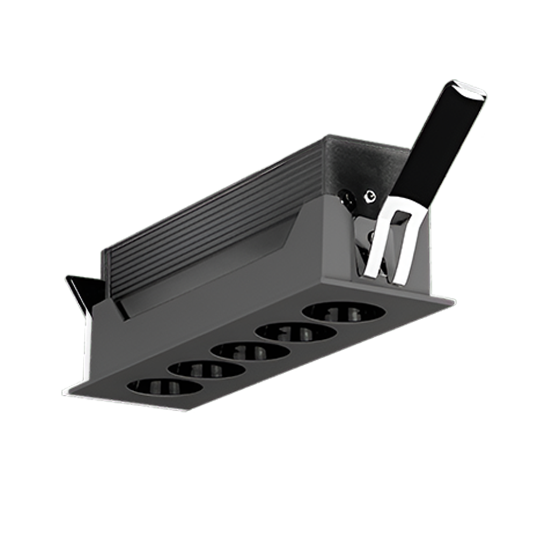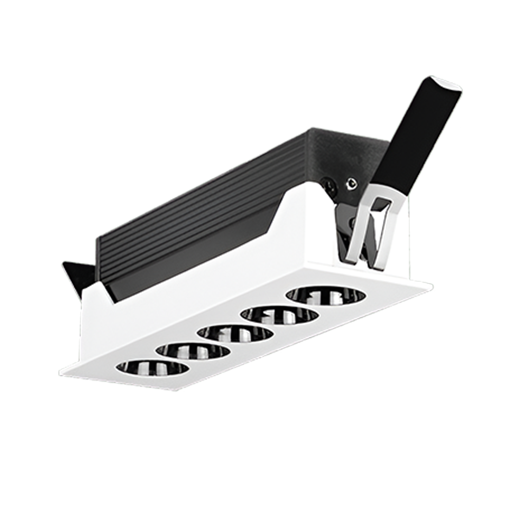 Luminario downlight LED rectangular puntual de techo para empotrar marca Osram 5 luces 10W óptica de 36°