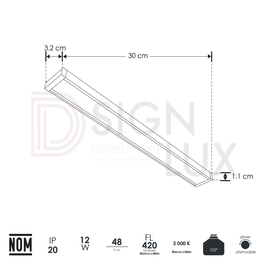 - Atenuable: si con fuente ILUDA5EN1200W48 (Por la curva de atenuación de este luminario, no se recomienda combinarlo con otros modelos distintos al usar una fuente de poder atenuable)