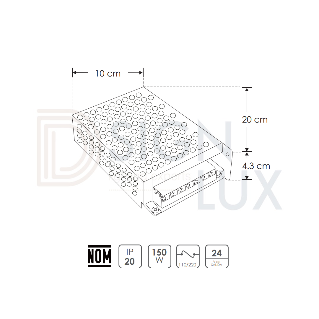 Fuente de alimentación conmutada para tira led extraplana, 100W con cubierta rejilla multiperforada, IP20. - Expertos en Iluminacion