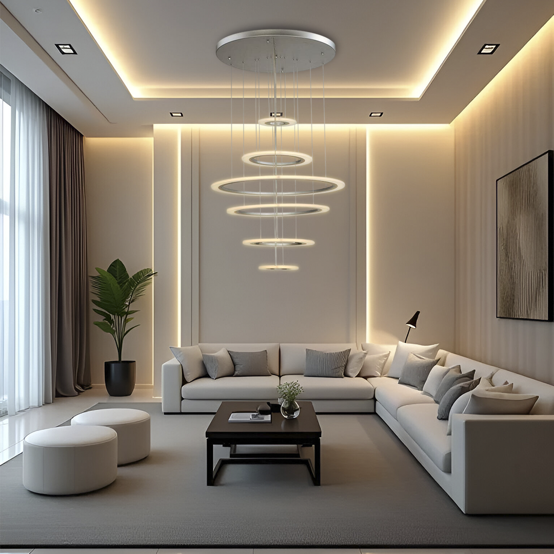 Lampara LED de anillos de metal, ideal para iluminar hogares, comercios y oficinas.