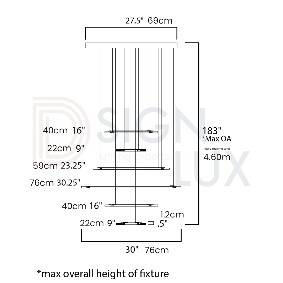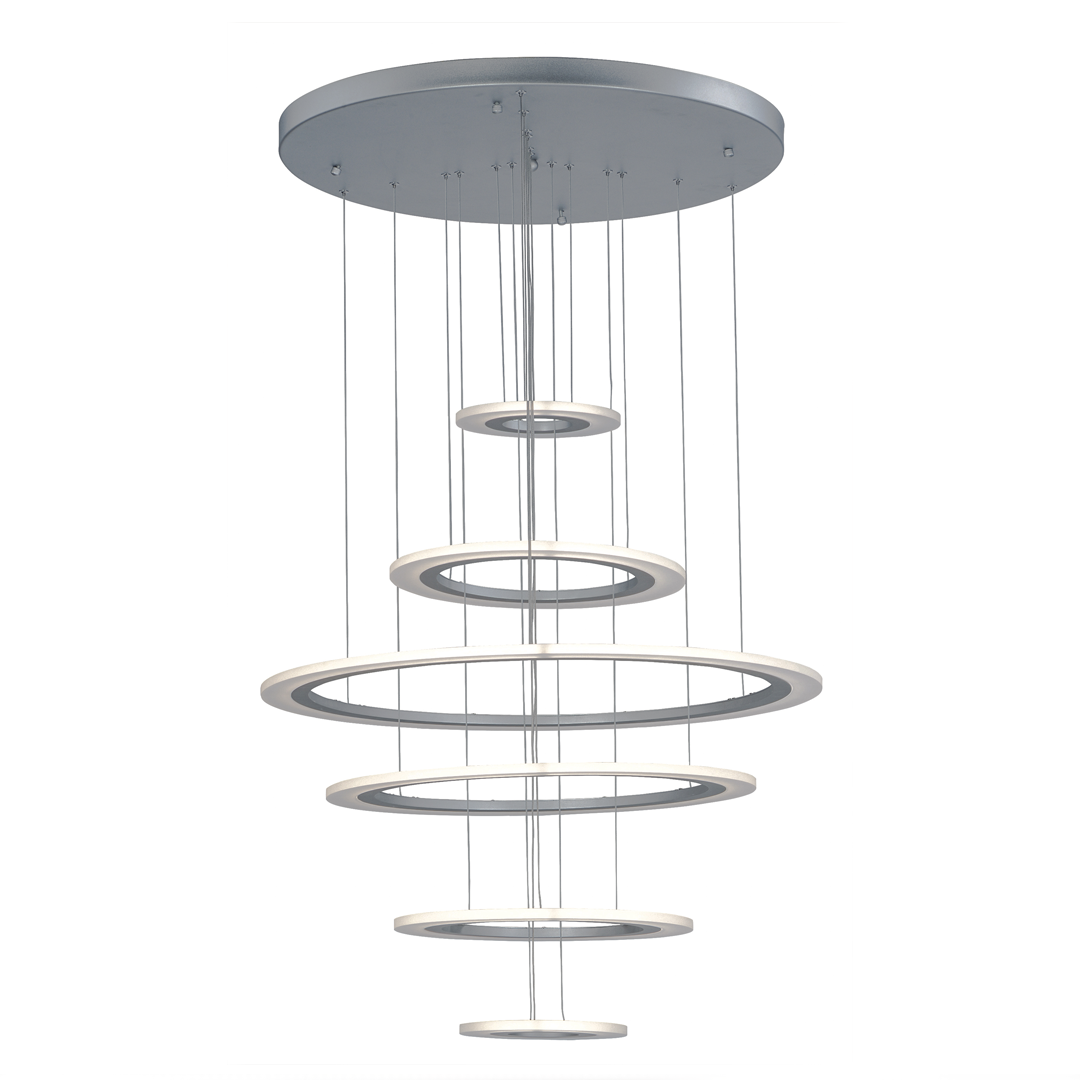 Lampara colgante led, de doble altura, de anillos metalicos, acabado plata mate, luces, 105W, 3000K, 7350lm, CRI80+, 120V, Regulable Triac, IP20, SATURN II – E22664-11MS – ET2