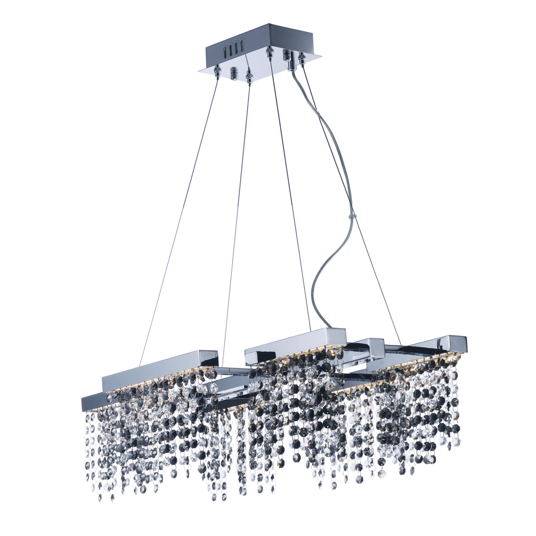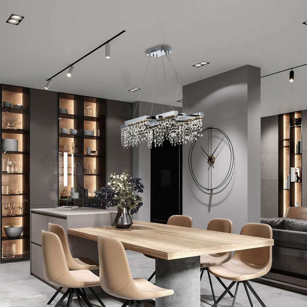 Lampara colgante led, de cristales y acero, acabado cromo, 6 luces, 24W, 3000K, 1680lm, CRI80+, 120V, Regulable Triac CL, IP20, Midnight Shower – E23098-138PC – ET2