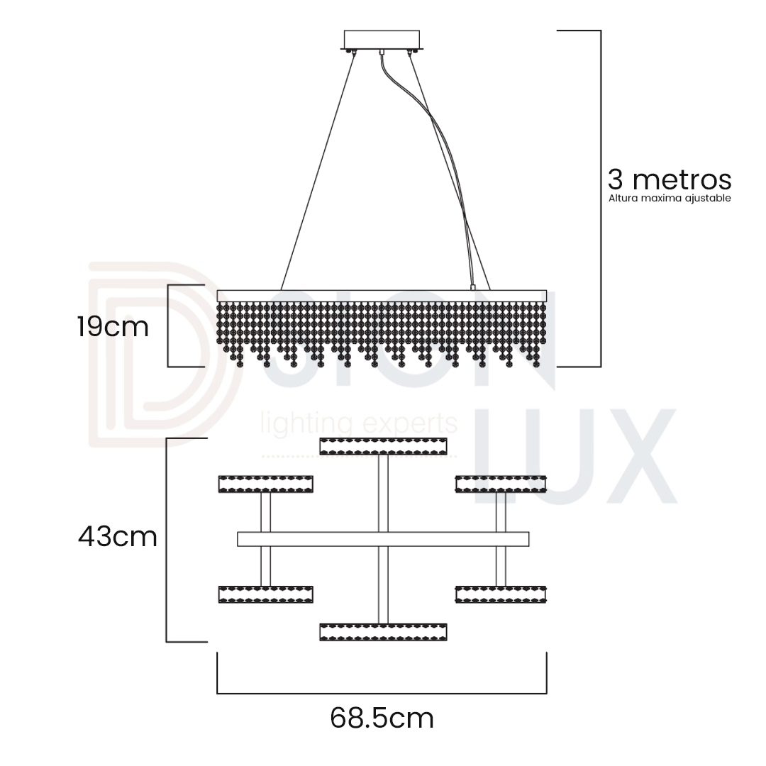 - Altura total máxima: 30cm a 3m