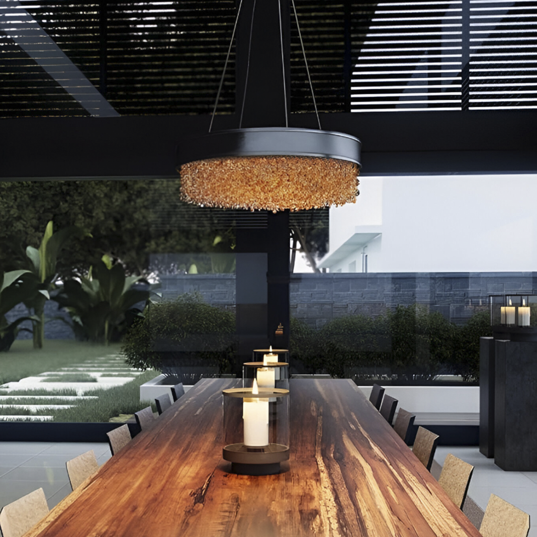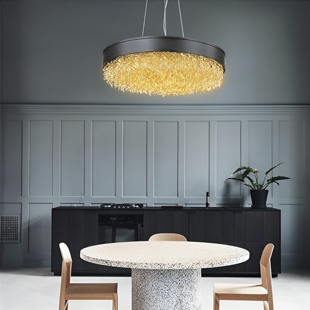 Lámpara de 16 luces LED de cristales escoceses, estilo contemporáneo.