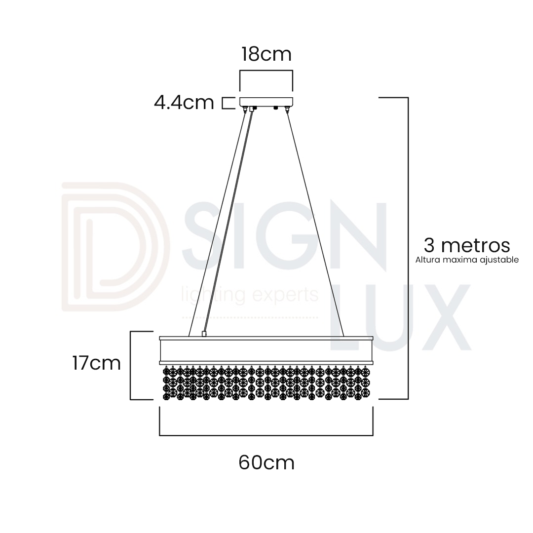 Lámpara colgante led redonda de cristales escoceses 16 luces de acero inoxidable en acabado bronce, 48W, con cable de 3m