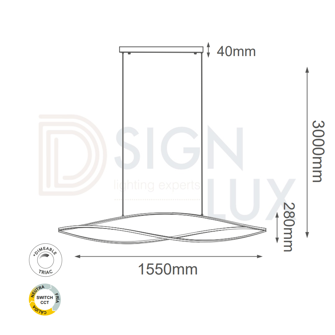 Lampara colgante led horizontal de metal y acrilico de luz calida 3000k de 65W