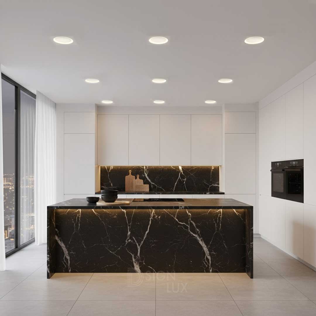 Lámpara de techo empotrable tipo trimless, ideal para cualquier espacio.