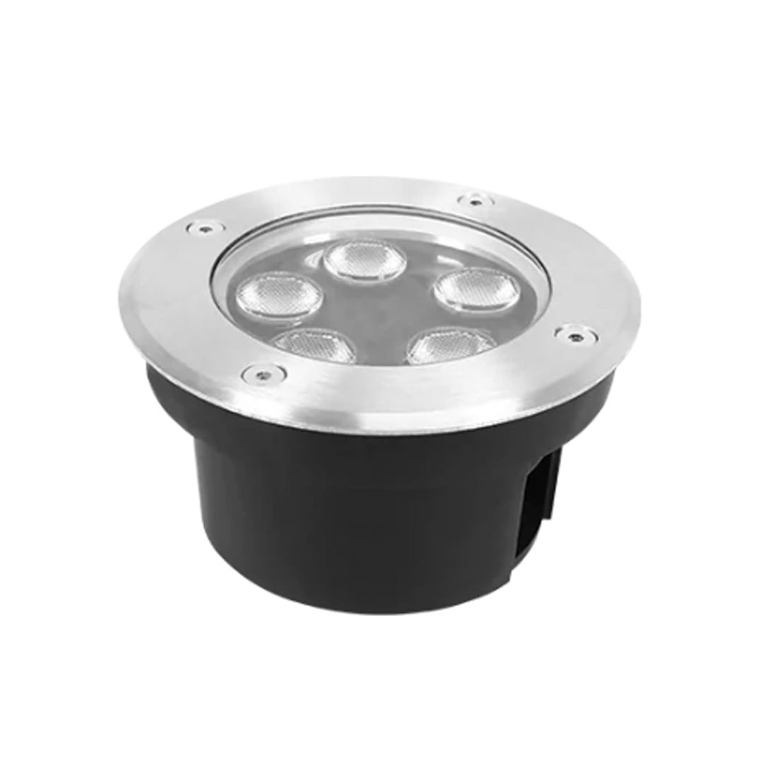 Luminario de piso LED de exterior 5W para empotrar redondo 10cm, incluye housing.
