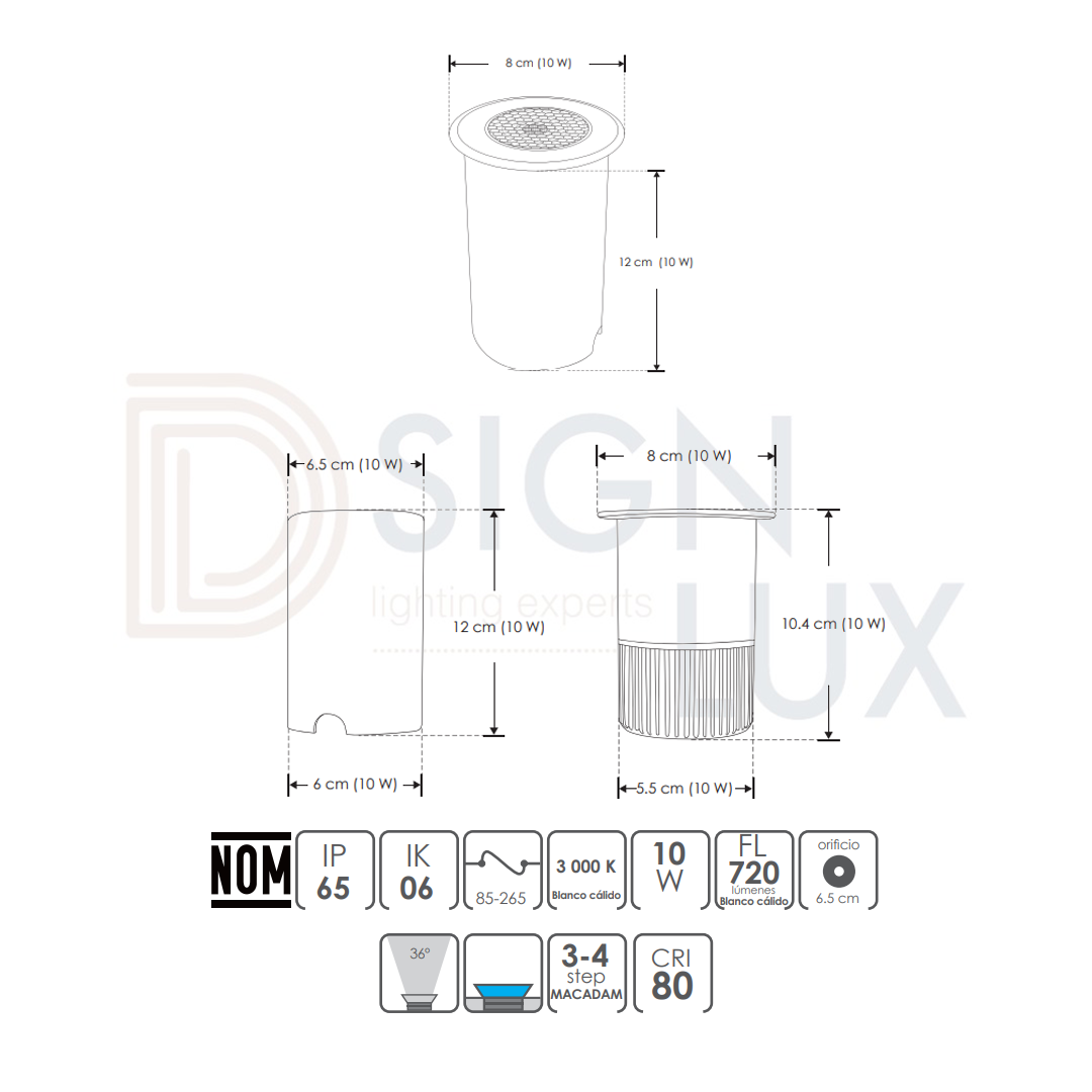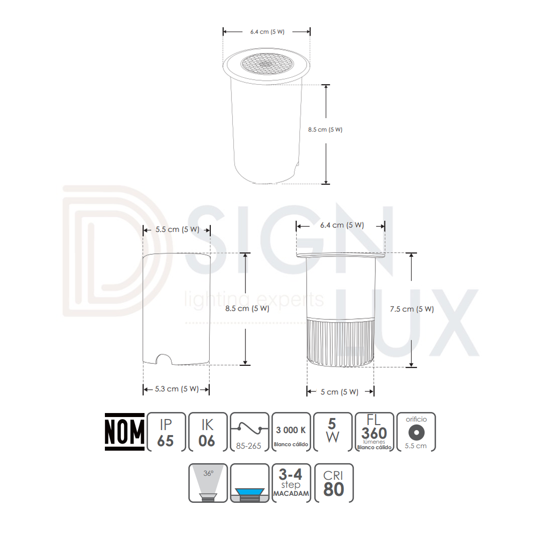 - Ángulo de iluminación: 36º