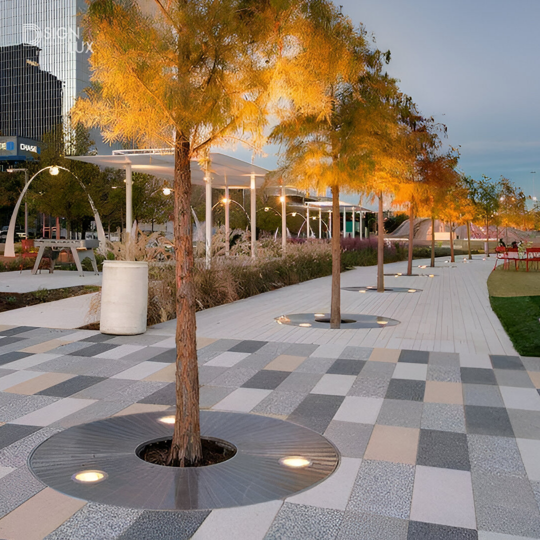 Luminario de piso LED de exterior de 5W y 9W para empotrar, redodno con efecto de luz asimétrica 10° x 45°