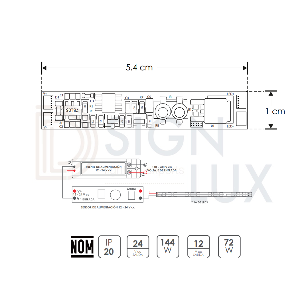 Sensor IR ON-OFF activado con puerta para tira de led 72 Watts-144 Watts, Alcance de detección del sensor de 5cm IP20
