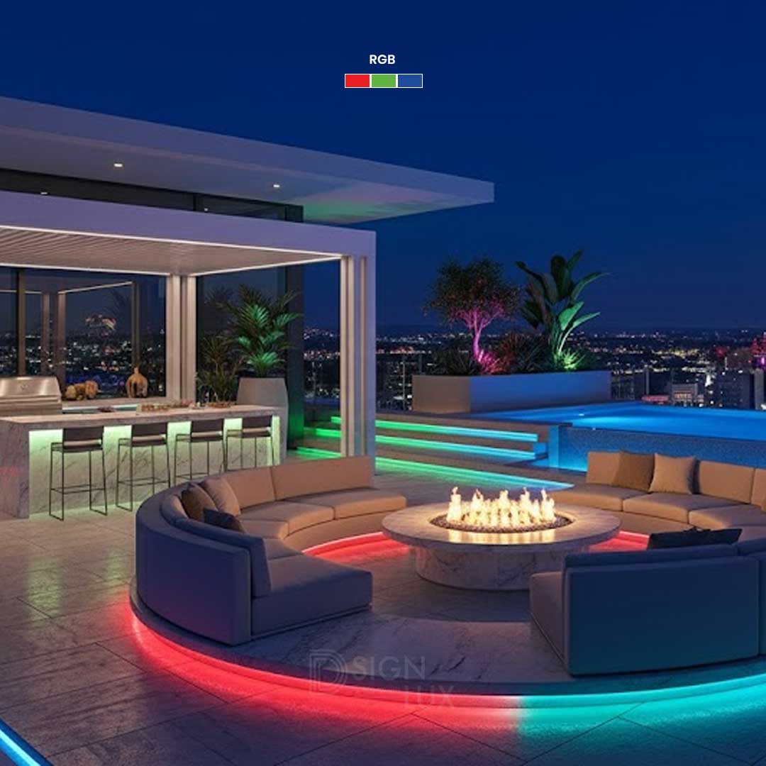 Tira LED extraplana RGB de 5m atenuable para exteriores.
