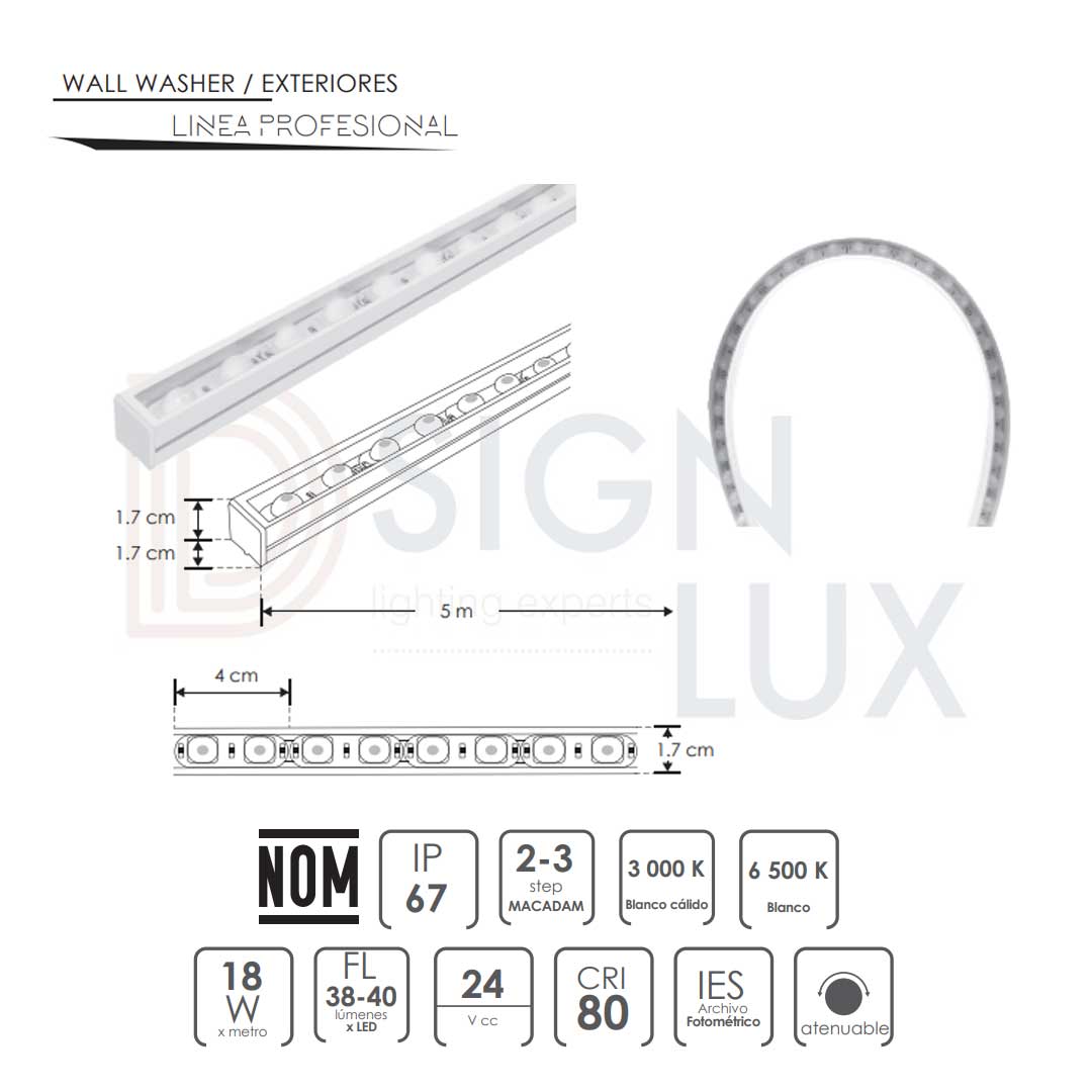 Tira LED Wall Washer de 5m x 1.7cm atenuable IP67 | Expertos en Iluminacion